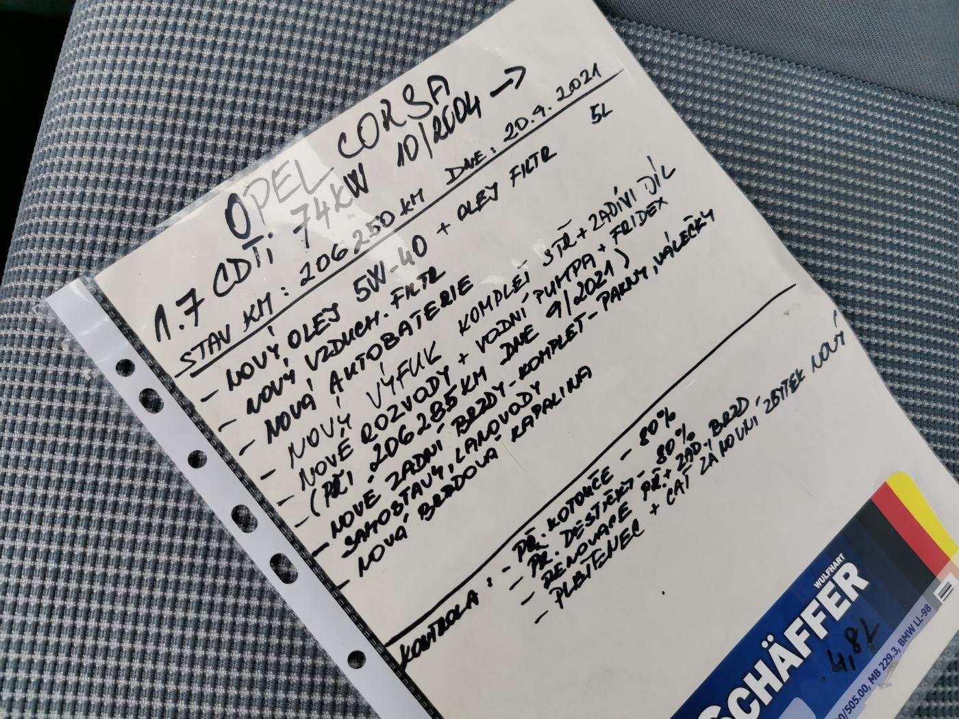 - Servisní knížka