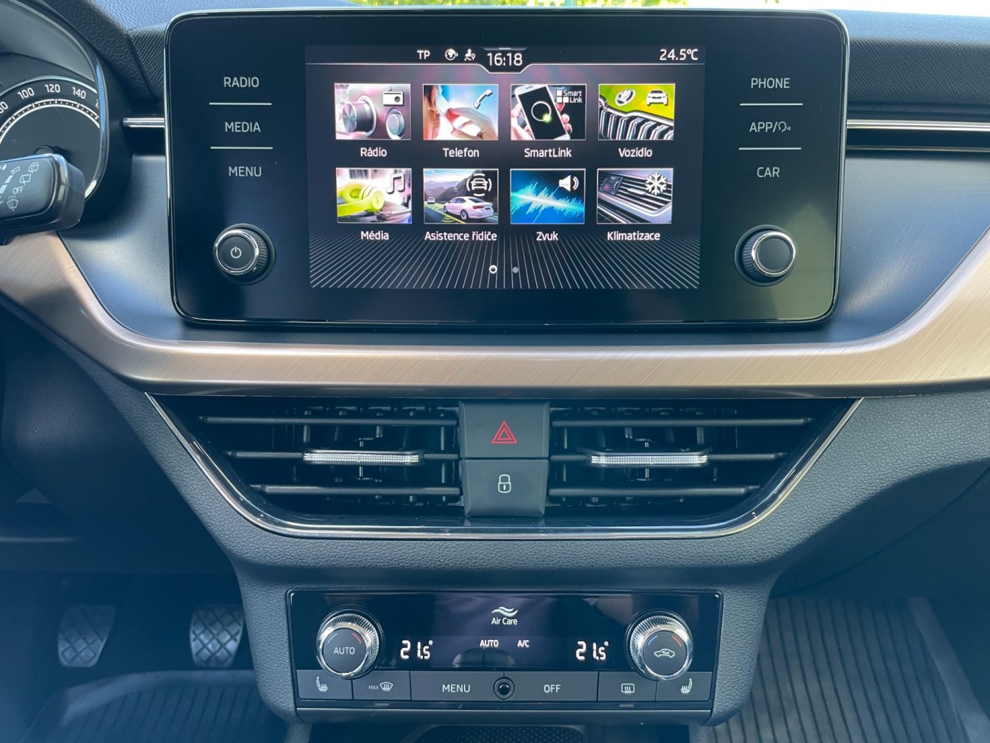 | Vnitřní výbava a komfort | Bezklíčkové ovládání, Deaktivace airbagu spolujezdce, El. ovládání oken, El. ovládání zrcátek, El. sklopná zrcátka, Elektrochromatické vnitřní zpětné zrcátko, Klimatizace aut. , Klimatizace dvouzónová, Malý kožený paket, Multifunkční volant, Nastavitelný volant, Posilovač řízení, Senzor opotřebení brzd. destiček, Senzor stěračů, Senzor tlaku v pneumatikách, Venkovní teploměr, Vyhřívaná zrcátka, Vyhřívaný volant |