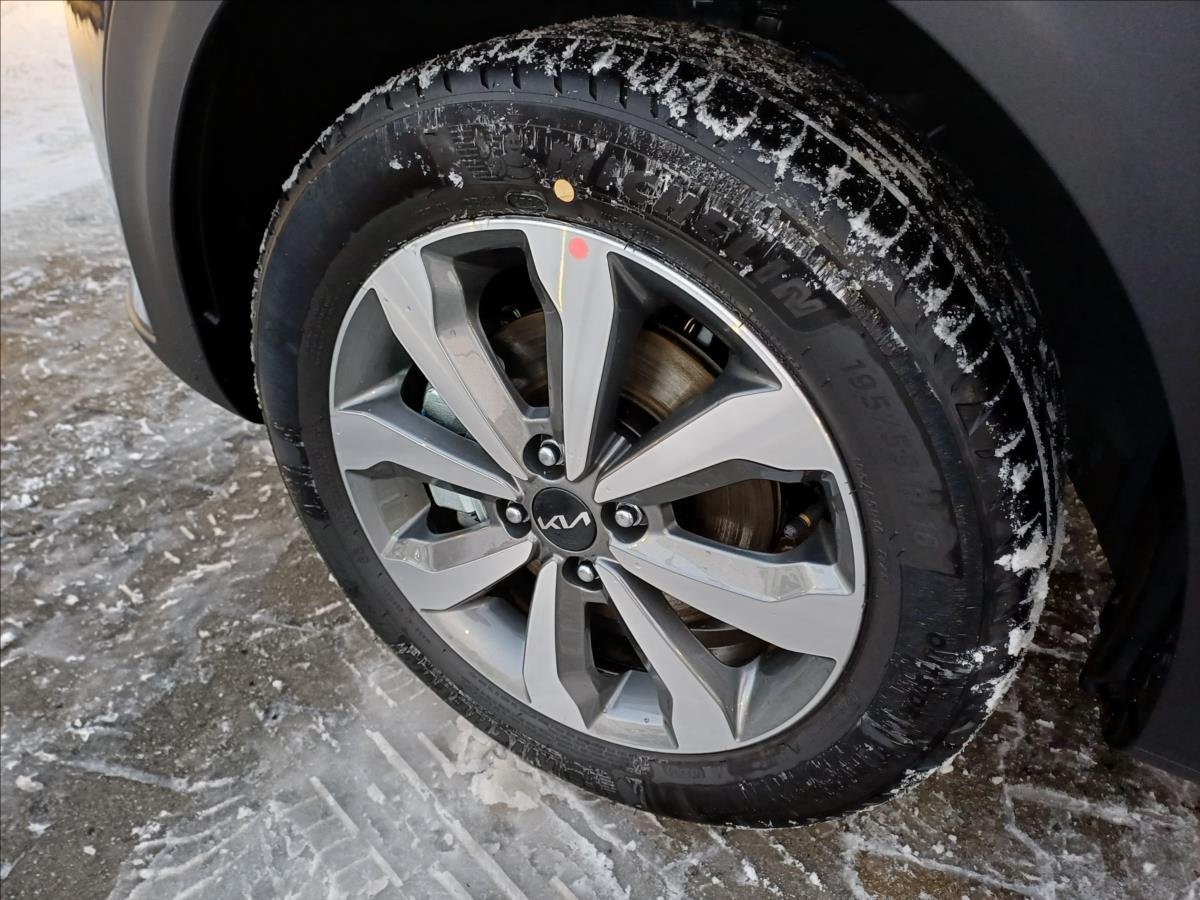 *16' hliníkové disky kol s pneumatikami 195/55; Antiblokovací systém ABS; Tempomat s omezovačem rychlosti; Manuální klimatizace; Ovládání audio systému na volantu; Výškově stavitelné sedadlo řidiče; Airbag řidiče a spolujezdce (s možností deaktivace; Loketní opěrka předních sedadel; Brzdový asistent BAS; Bluetooth handsfree; Elektrické ovládání zadních oken; Zadní parkovací senzory; Asistent průjezdu zatáčkou CBC; Systém sledování únavy řidiče (DAW); Denní svícení; Rozdělovač brzdného tlaku EBD; Vnější zpětná zrcátka - elektricky ovládaná a vyhř; Elektronický stabilizační systém ESC; Varovná signalizace zadních světlometů při panické; Systém autonomního nouzového brzdění (FCA) - auto/; Maska chladiče černá/stříbrná; Přední mlhové světlomety; Elektrické ovládání předních oken; Vyhřívaná přední sedadla; Záclonové airbagy pro přední a zadní sedadla; Asistent pro rozjezd do kopce HAC; Automatické přepínání dálkových světlometů (HBA); Vyhřívaný volant; IN KEY imobilizer; Indikace nezapnutých pásů; Inteligentní ukazatel rychlostních limitů (ISLA); Ukotvení dětské sedačky na zadních krajních sedadl; Centrální zamykání s dálkovým ovládáním + alarm +; Asistent následování v jízdním pruhu (LFA); Aktivní systém pro jízdu v pruzích (LKA); Kůží potažený volant a hlavice řadicí páky; Čidlo nedostatku kapaliny v ostřikovači; Schránka na brýle s bodovým světlem; Lapače nečistot; 8' integr. GPS navigace + DAB vč. Kia Connect; Kia; Síť zavazadlového prostoru; Nárazníky a vnější kliky v barvě karoserie; Outdoor Body kit; Hlavní světlomety projektorového typu; Podélné střešní ližiny; Zadní parkovací kamera; Boční airbagy pro přední sedadla; Čalounění sedadel látkové; Sklopné opěradlo zadního sedadla v poměru 60:40; Směrová stabilizace vozidla při brždění SLS; Úchytná oka v zavazadlovém prostoru; Přístrojová deska Supervision s 4; 2' barevným disp; Výškově a podélně stavitelný volant; Systém kontroly trakce TCS; Dojezdová rezerva; Monitorování tlaku v pneumatikách TPMS; Palubní počítač; Tónovaná skla; USB nabíječka; USB nabíječka ve druhé řadě sedadel; Systém řízení stability vozidla VSM; Celková hmotnost pneumatik na vozidle - 37kg; Exteriér: EU3; Interiér: WK; Doprava; ZARUCNI KNIZKA 04 2024; BRASNA POV VYBAVY KIA+TROJUHELNIK+LANO+RUKAVICE+VE; Marže dealera; zvýhodnění DEMO *