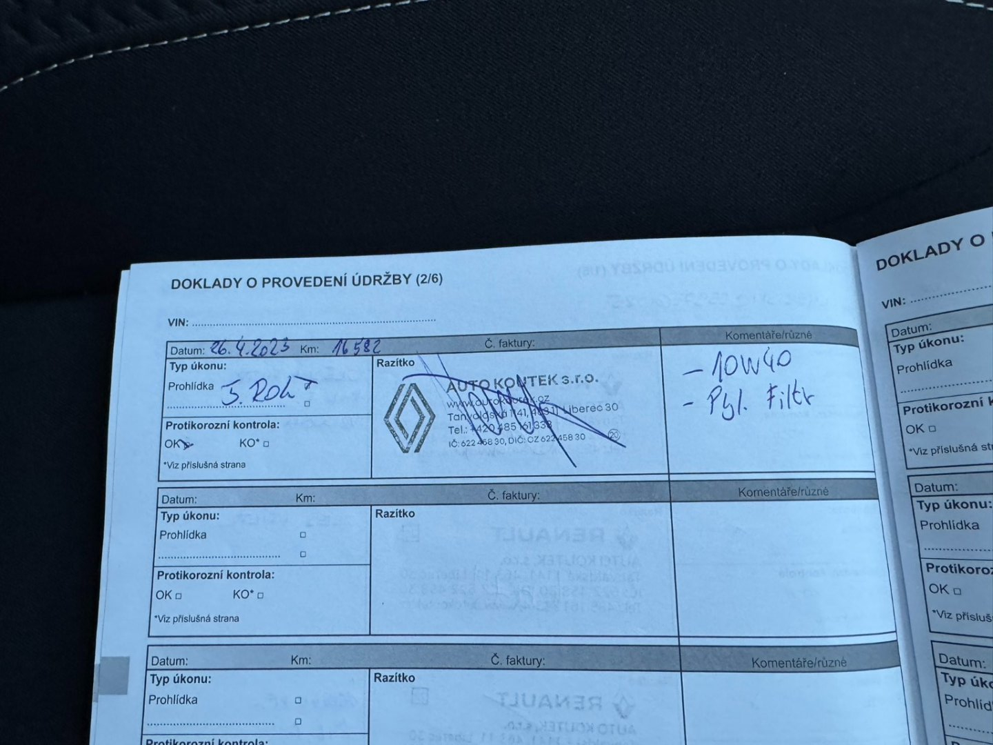 - Servisní knížka