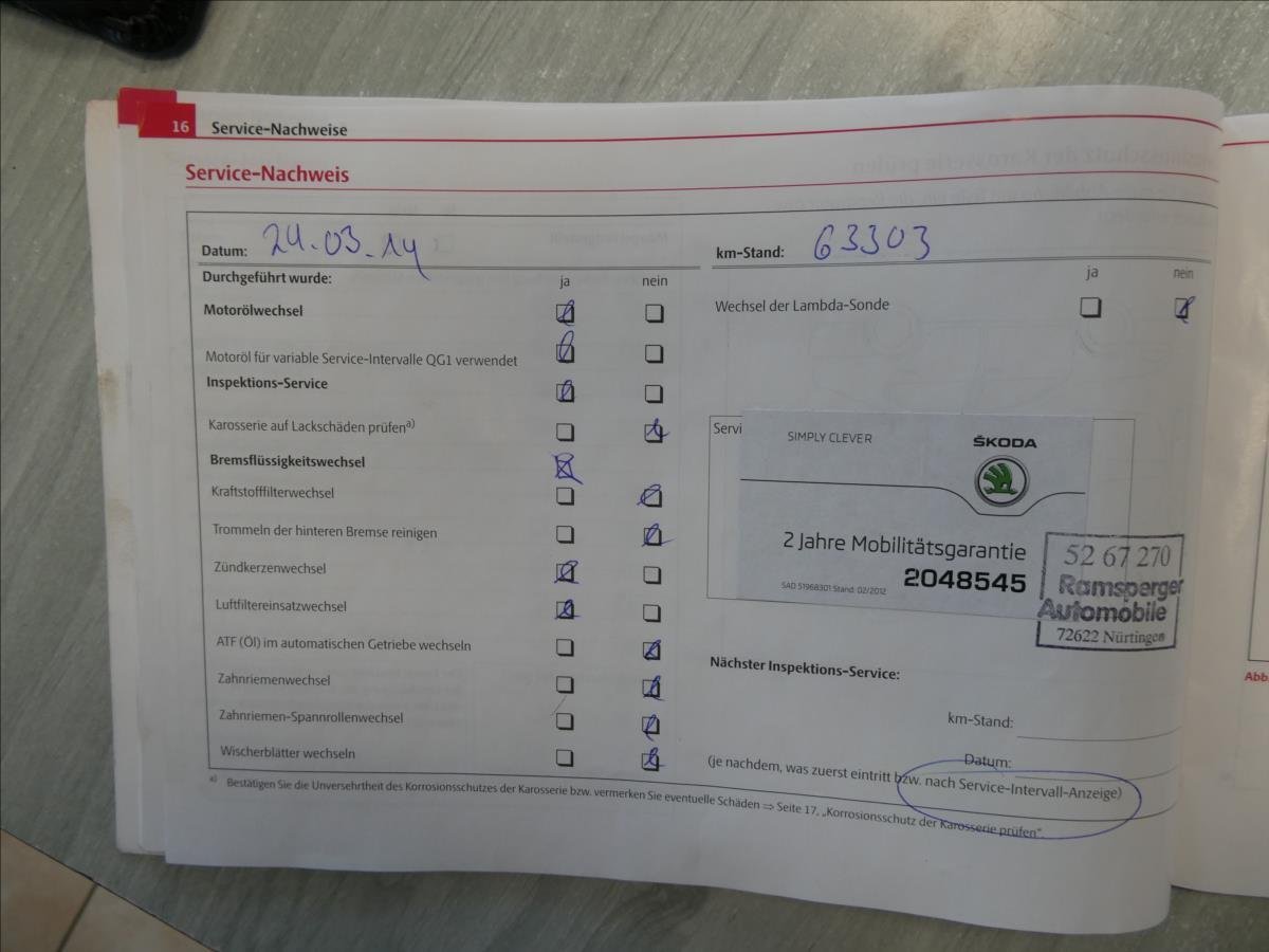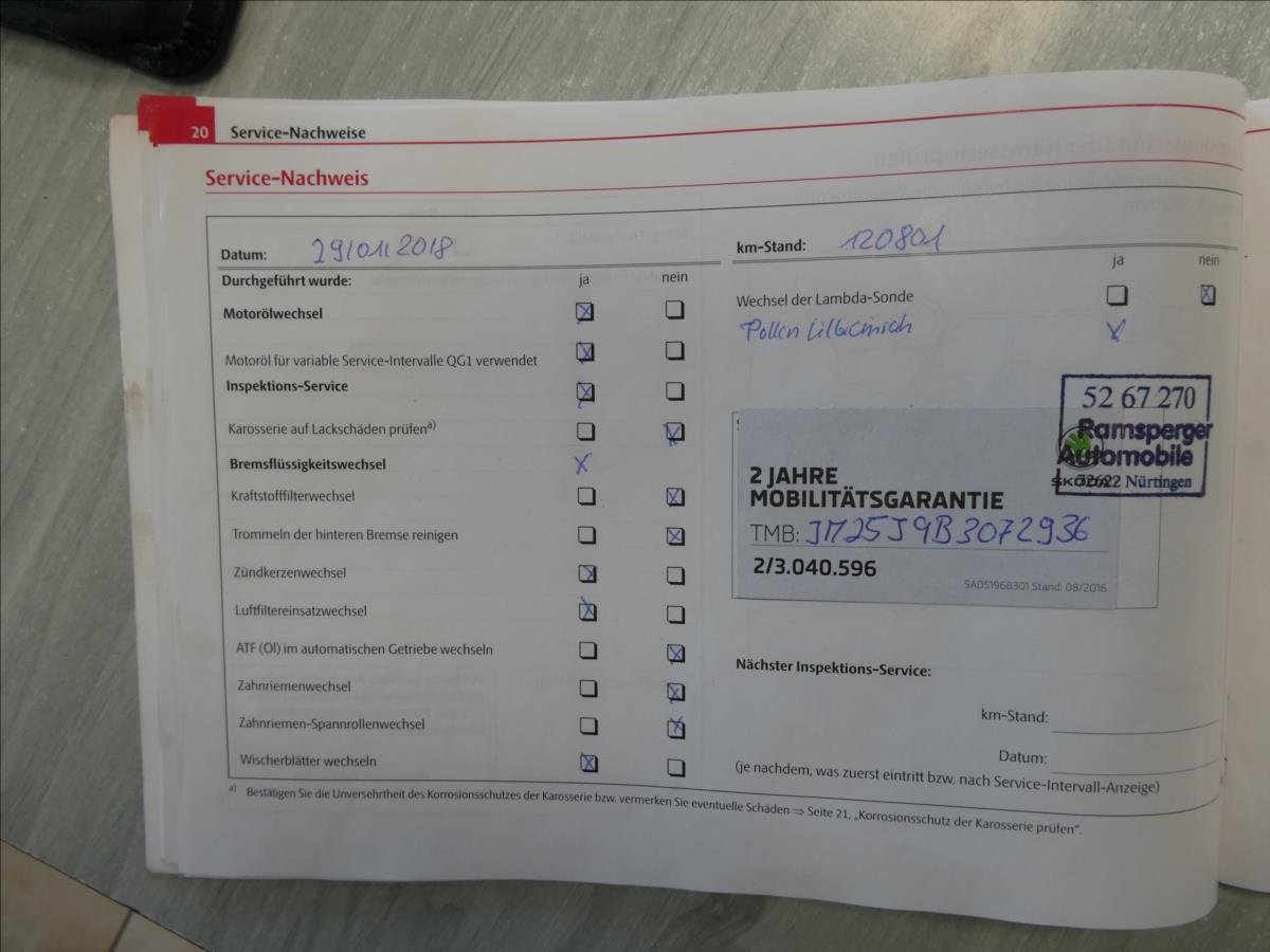 - Servisní knížka