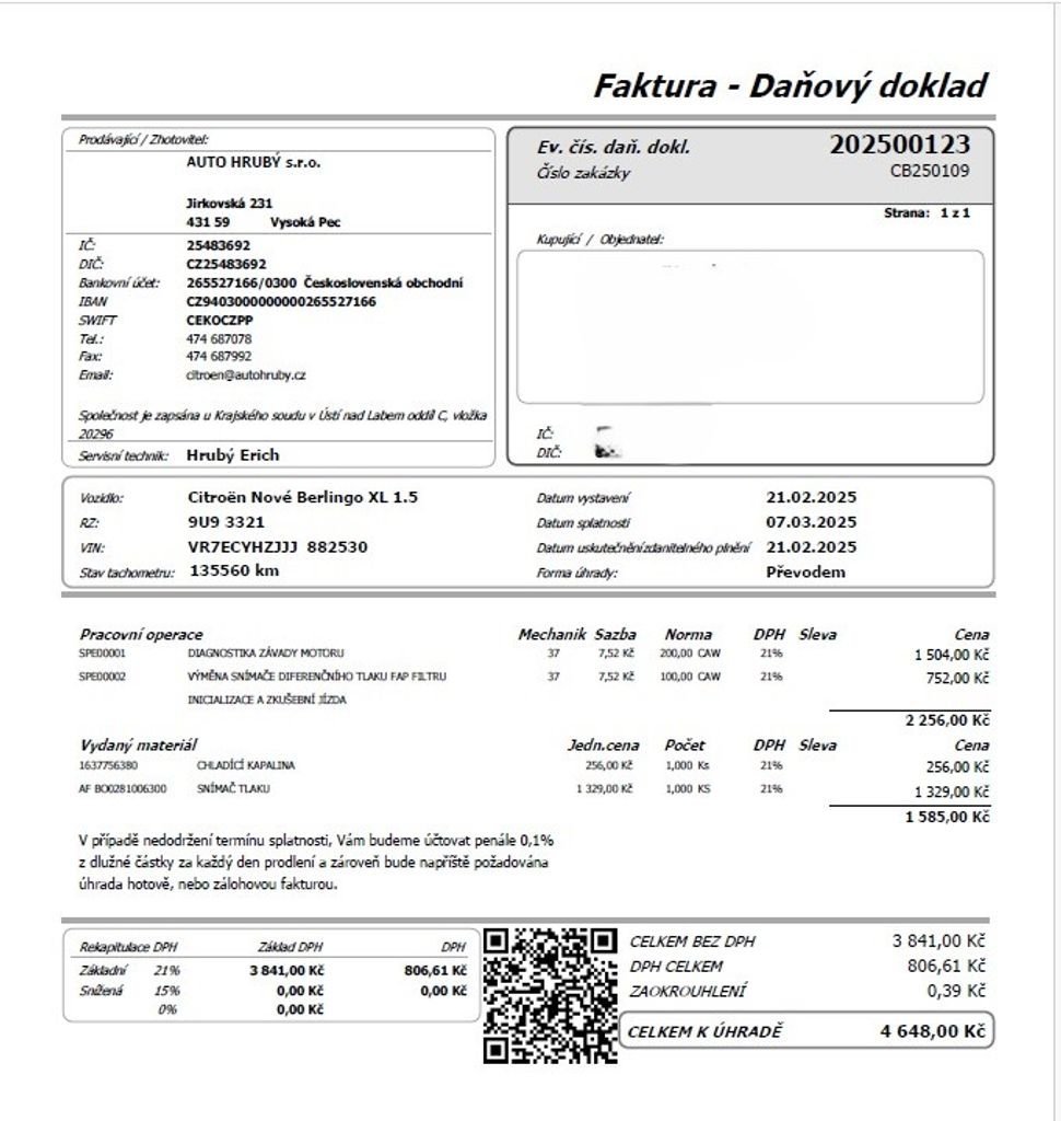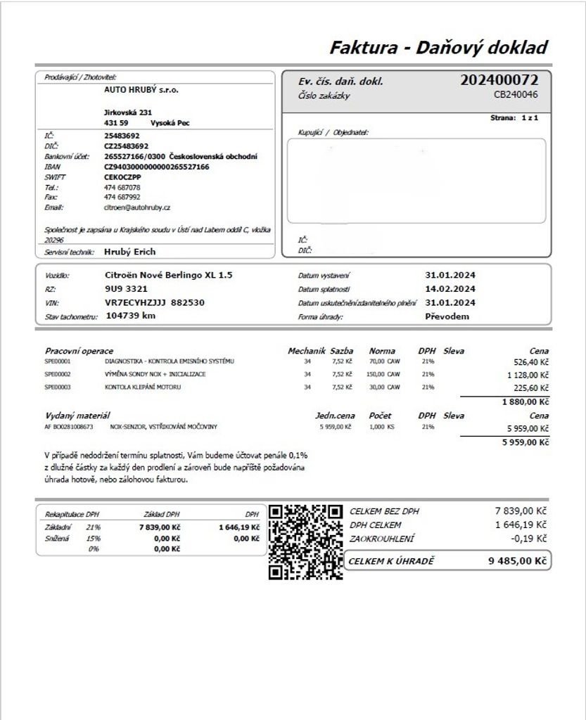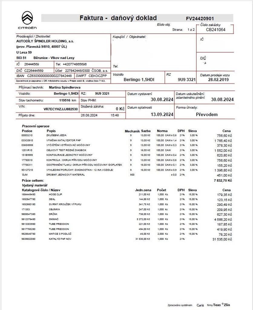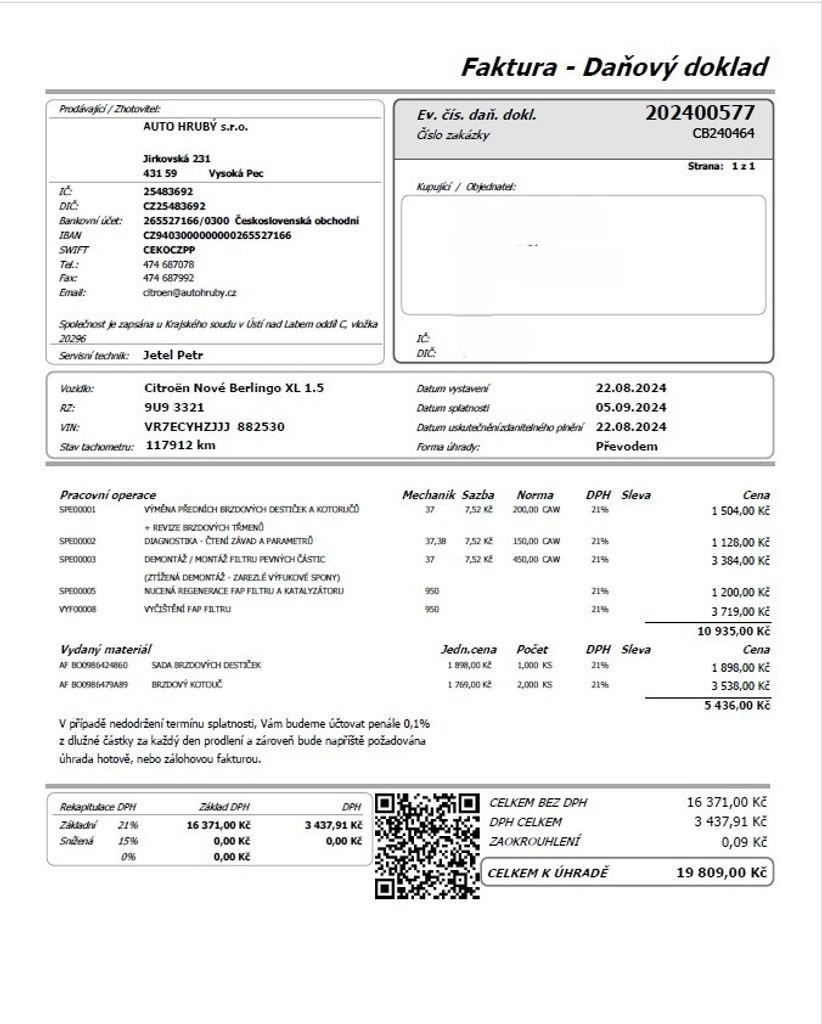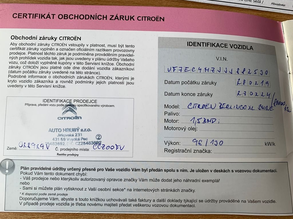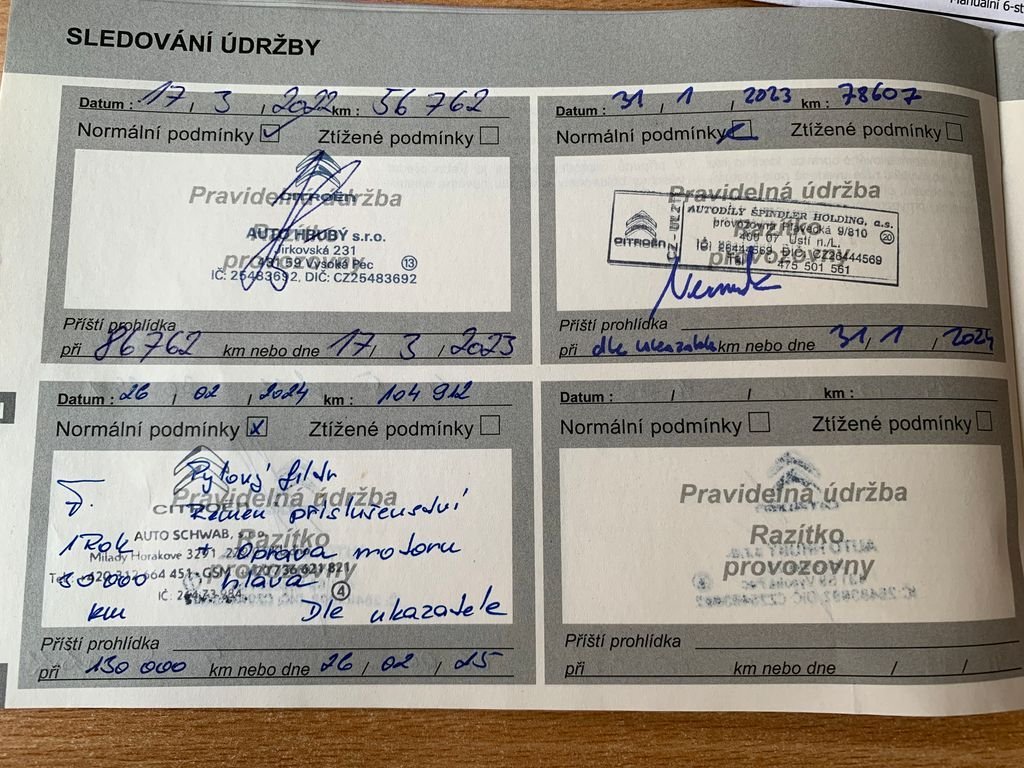 • Servisní knížka
