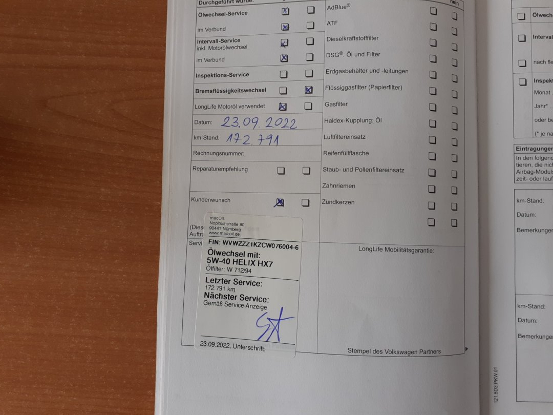 - Servisní knížka