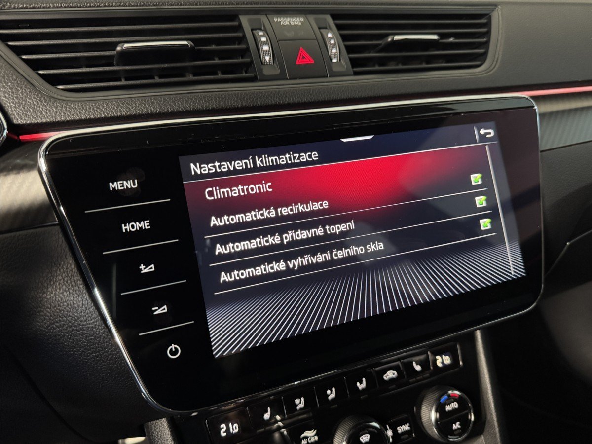 | Vnitřní výbava a komfort | Ambientní LED osvětlení interiéru, Klimatizace aut. , Deaktivace airbagu spolujezdce, Klimatizace dvouzónová, El. sklopná zrcátka, El. parkovací brzda, Klimatizovaná přihrádka, Multifunkční volant, Nastavitelný volant, Posilovač řízení, Pádla řazení na volantu, Senzor opotřebení brzd. destiček, Senzor stěračů, Senzor tlaku v pneumatikách, Síťka mezistěny zavazadlového prostoru, Venkovní teploměr, Vnitřní teploměr, Vyhřívaná zrcátka, Vyhřívané čelní sklo, Vyhřívané trysky ostřikovačů skla, Vyhřívaný volant, Zadní loketní opěrka |