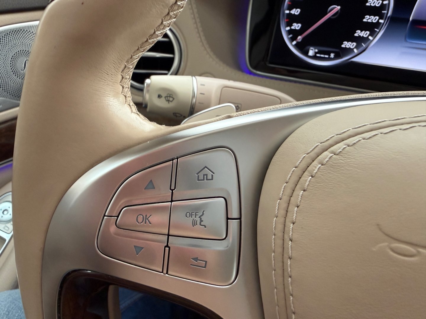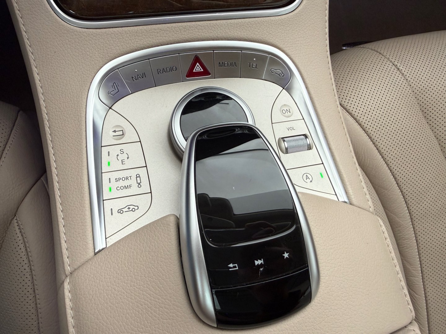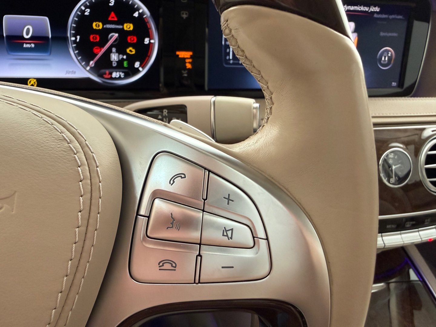 | Vnitřní výbava a komfort | Ambientní LED osvětlení interiéru, Bezklíčkové ovládání, Deaktivace airbagu spolujezdce, El. ovládání oken, El. ovládání zrcátek, El. ovládaný kufr, El. parkovací brzda, El. sklopná zrcátka, Elektrochromatické vnitřní zpětné zrcátko, Klimatizace aut. , Klimatizace čtyřzónová, Kožené čalounění, Multifunkční volant, Nastavitelný volant, Pádla řazení na volantu, Posilovač řízení, Roletky na zadní okna, Senzor opotřebení brzd. destiček, Senzor stěračů, Senzor tlaku v pneumatikách, Venkovní teploměr, Vyhřívaná zrcátka, Vyhřívané trysky ostřikovačů skla |