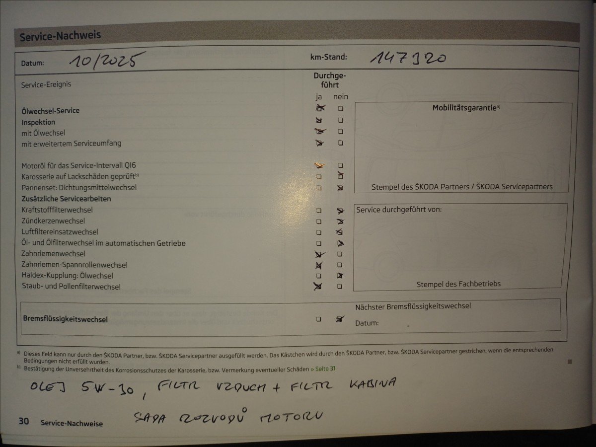 - Servisní knížka