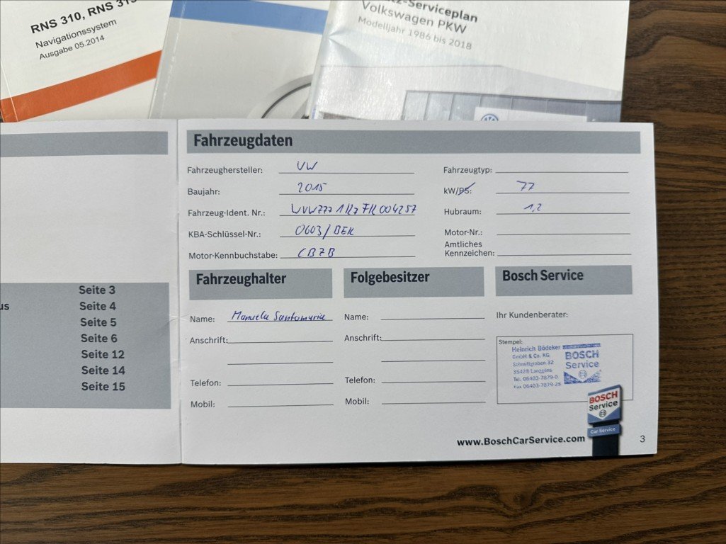 - Servisní knížka