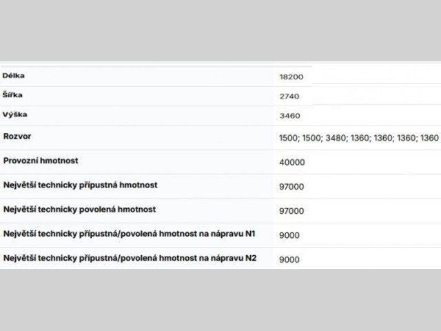 Parametry vozidla