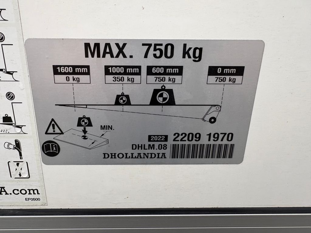 Skříňová nástavba s vnitřními rozměry délka 420cm; šířka 220cm; výška 230cm. Hydraulické čelo DHOLLANDIA 750kg.