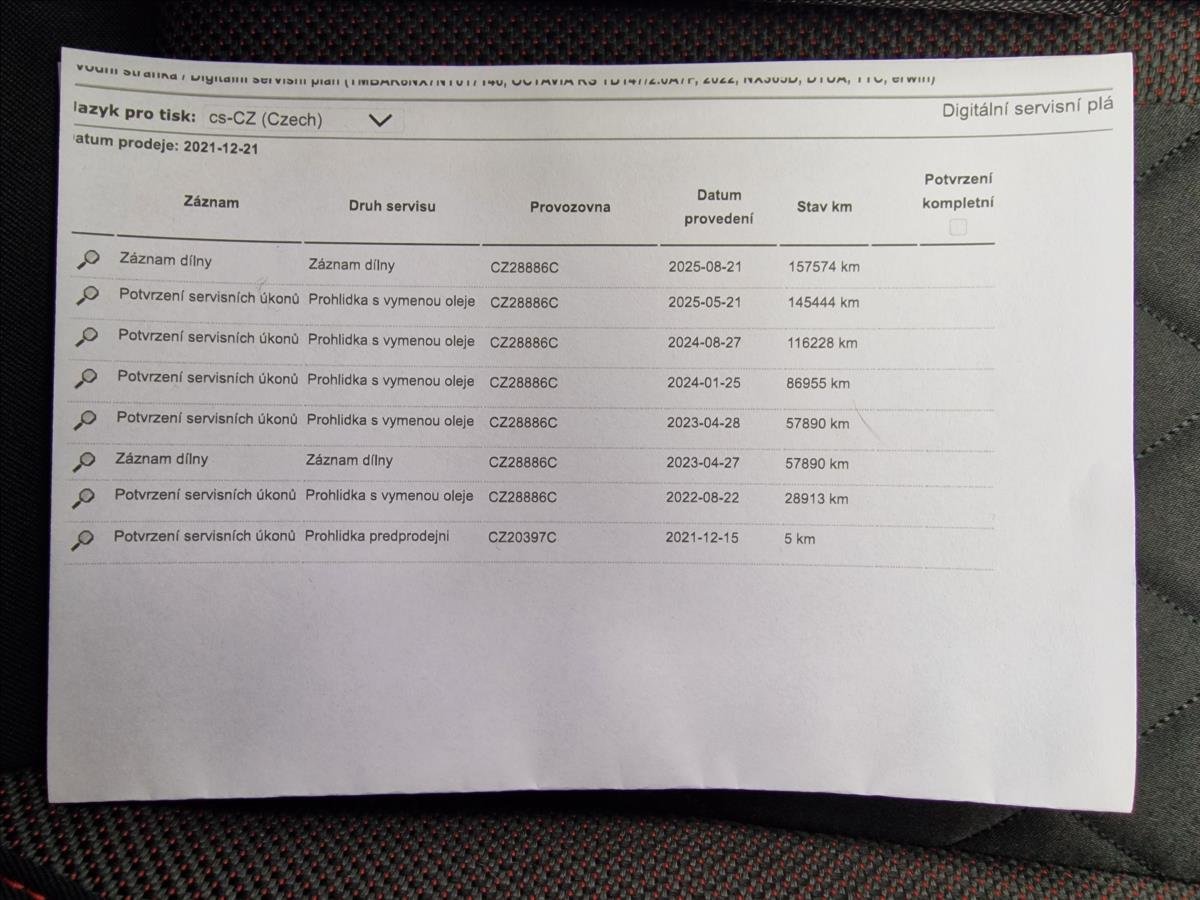 - Servisní knížka