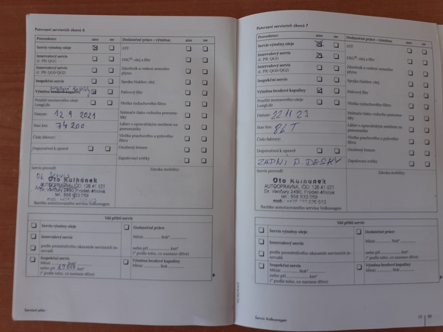 - Servisní knížka