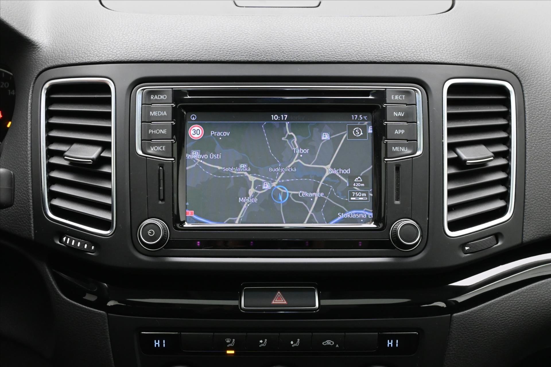 | Vnitřní výbava a komfort | Bezklíčkové ovládání, Deaktivace airbagu spolujezdce, El. sklopná zrcátka, El. parkovací brzda, Klimatizovaná přihrádka, Multifunkční volant, Nastavitelný volant, Posilovač řízení, Roletky na zadní okna, Senzor tlaku v pneumatikách, Střešní okno, Klimatizace třízónová, Venkovní teploměr, Vyhřívaná zrcátka |