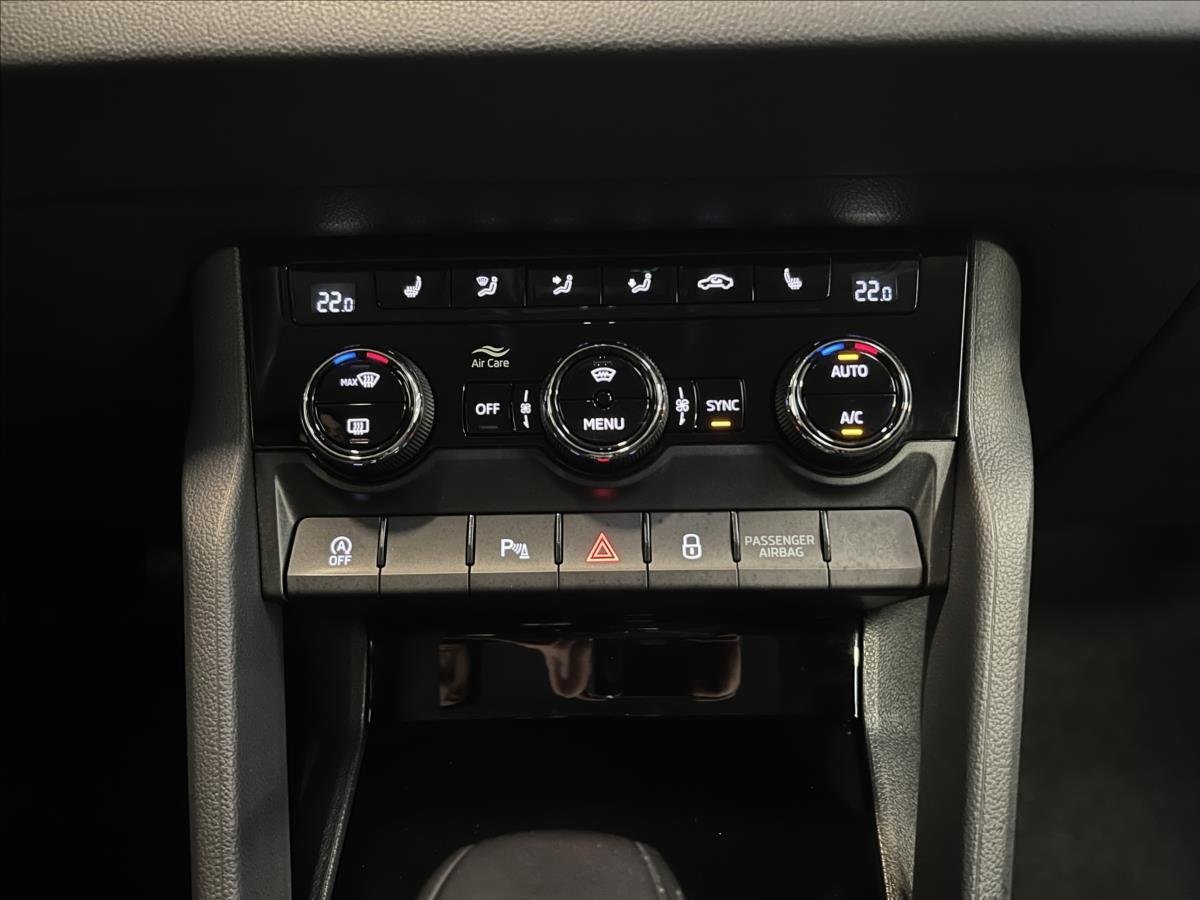 | Vnitřní výbava a komfort | Ambientní LED osvětlení interiéru, Klimatizace aut. , Bezklíčkové ovládání, Deaktivace airbagu spolujezdce, El. sklopná zrcátka, El. parkovací brzda, Klimatizovaná přihrádka, Multifunkční volant, Nastavitelný volant, Posilovač řízení, Senzor opotřebení brzd. destiček, Senzor stěračů, Senzor tlaku v pneumatikách, Klimatizace třízónová, Venkovní teploměr, Vnitřní teploměr, Vyhřívaná zrcátka, Vyhřívané čelní sklo, Vyhřívané trysky ostřikovačů skla, Vyhřívaný volant, Zadní loketní opěrka |