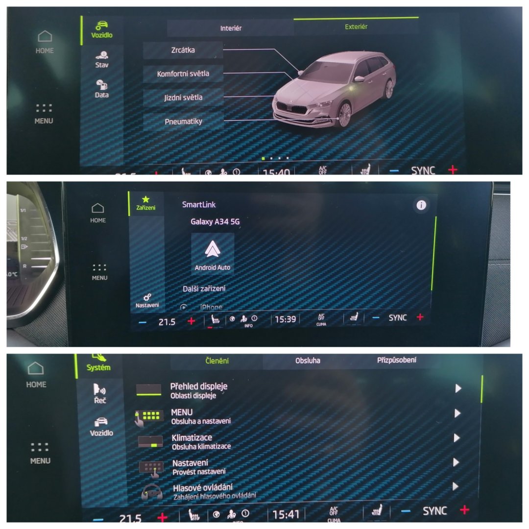 Vnitřní výbava a komfort Ambientní LED osvětlení interiéru, Bezklíčkové ovládání, Deaktivace airbagu spolujezdce, El. ovládání oken, El. ovládání zrcátek, El. ovládaný kufr, El. parkovací brzda, El. sklopná zrcátka, Klimatizace aut. , Multifunkční volant, Nastavitelný volant, Posilovač řízení, Senzor stěračů, Senzor tlaku v pneumatikách, Venkovní teploměr, Vyhřívaná zrcátka