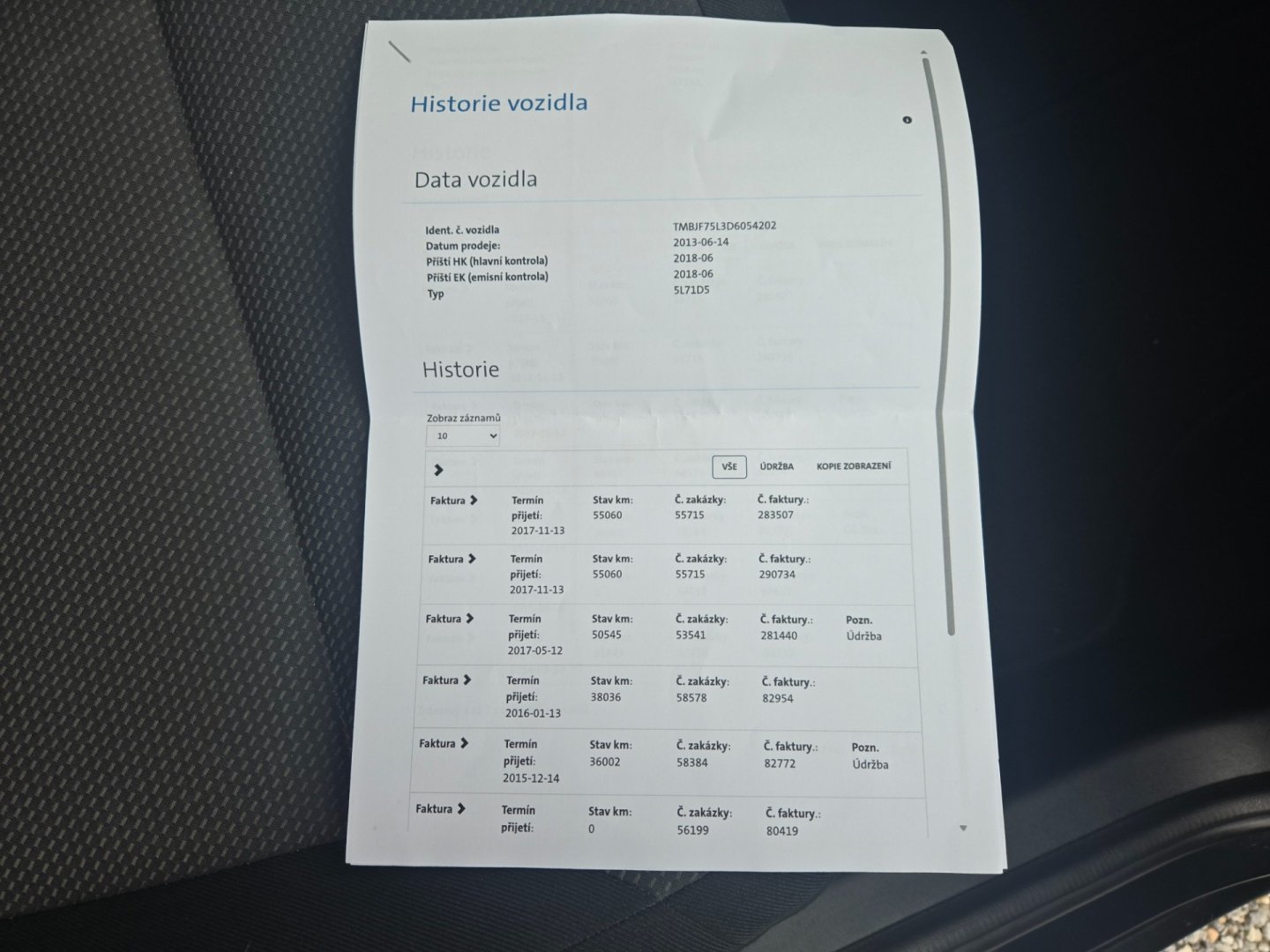 - Servisní knížka
