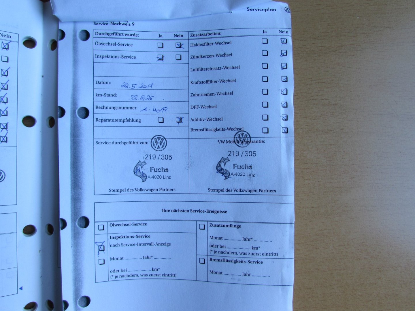 • Servisní knížka