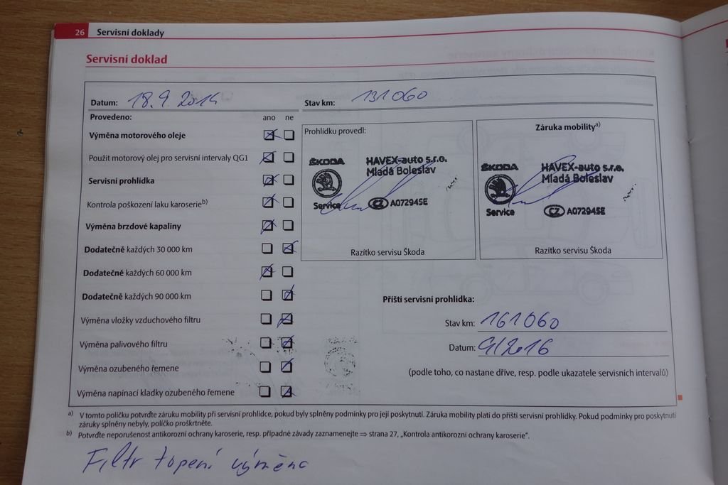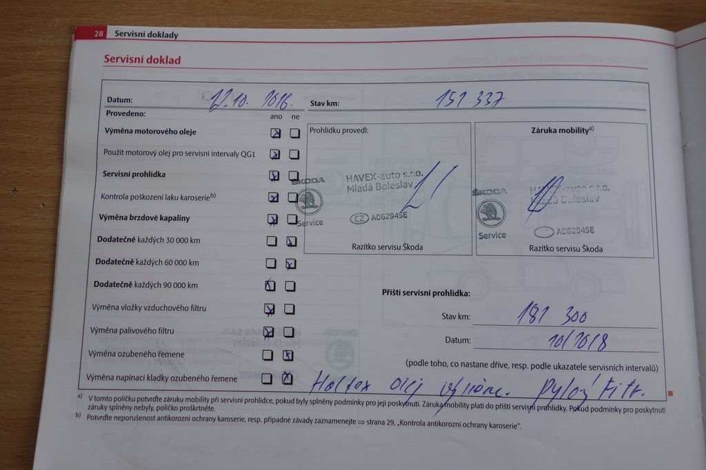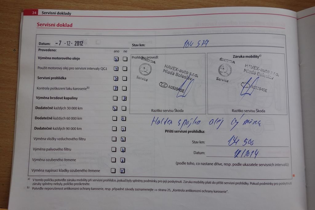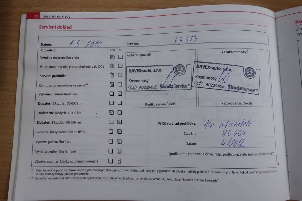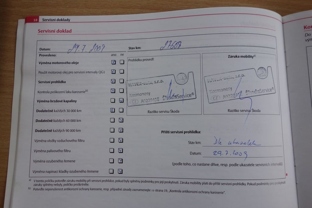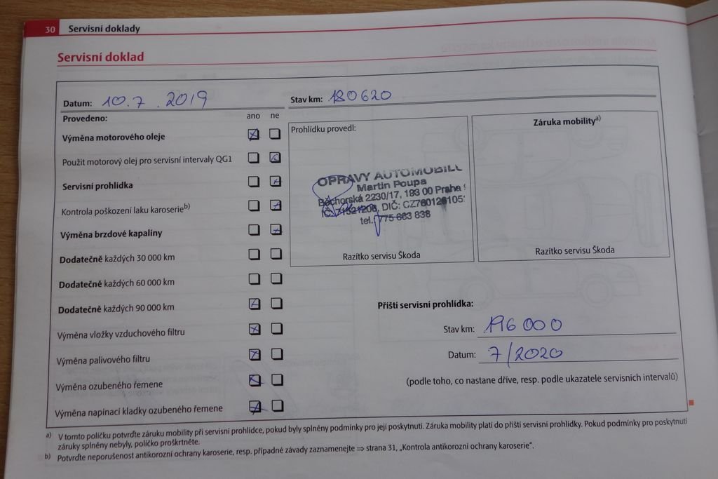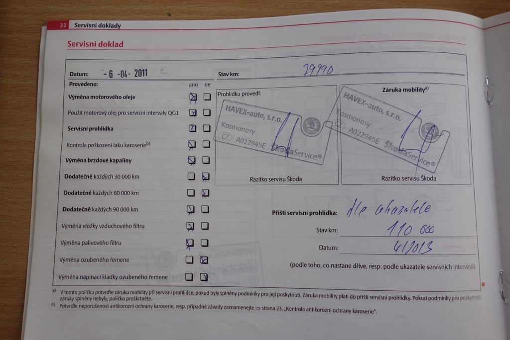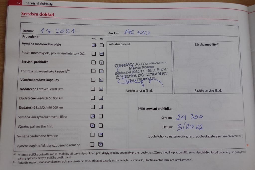 • Servisní knížka