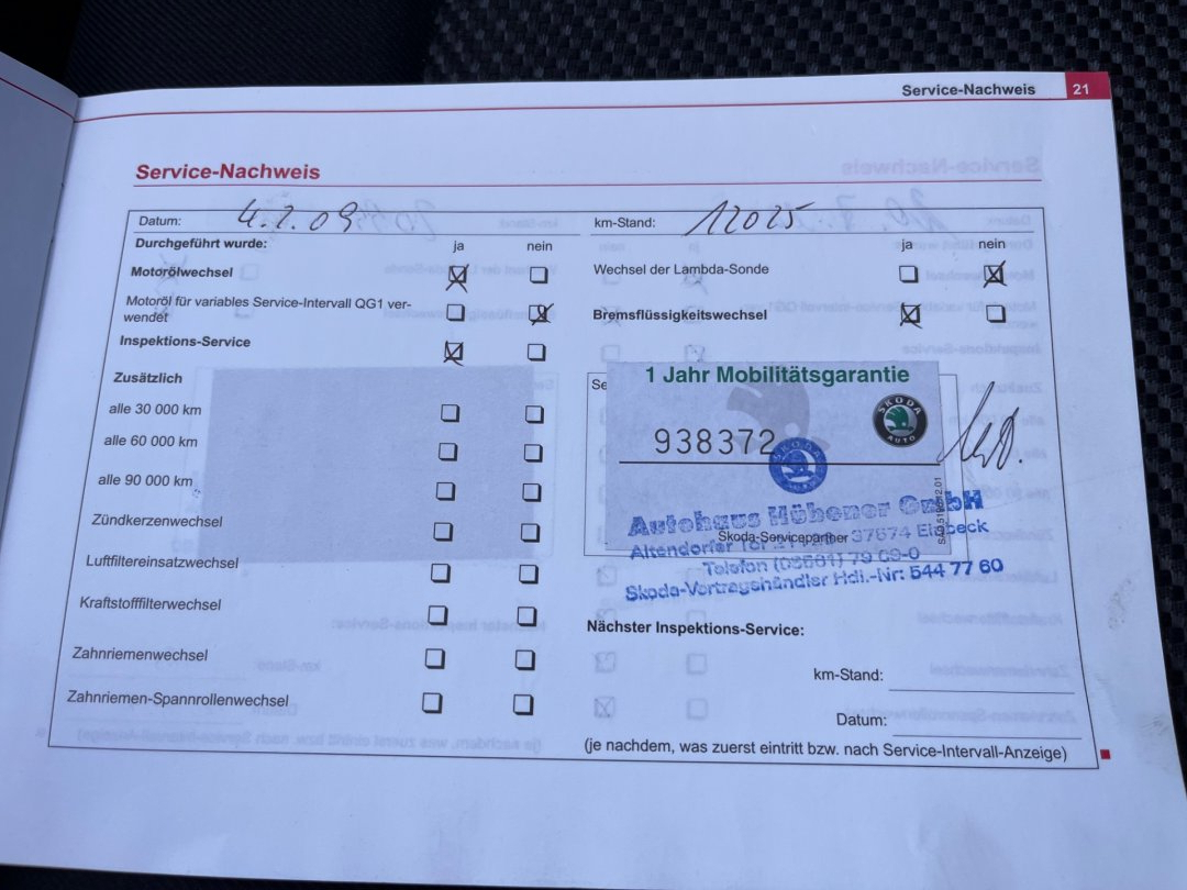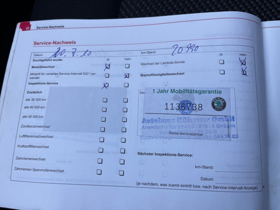 - Servisní knížka