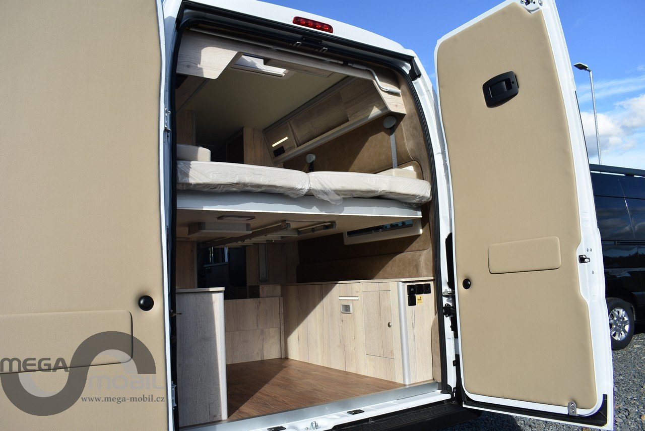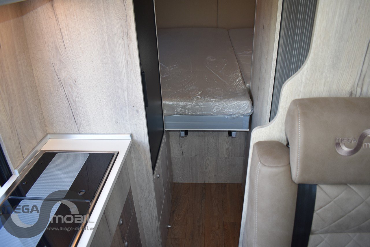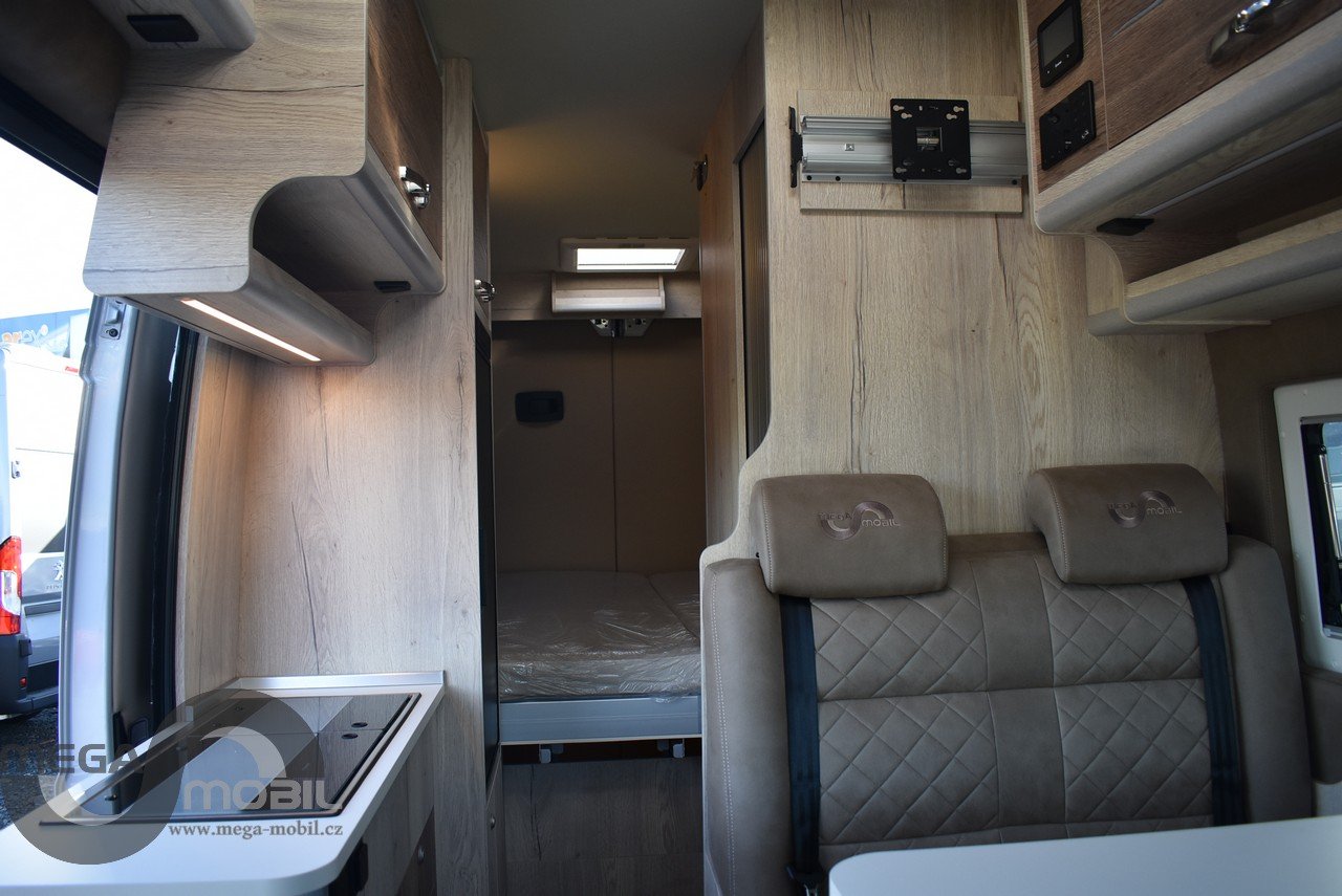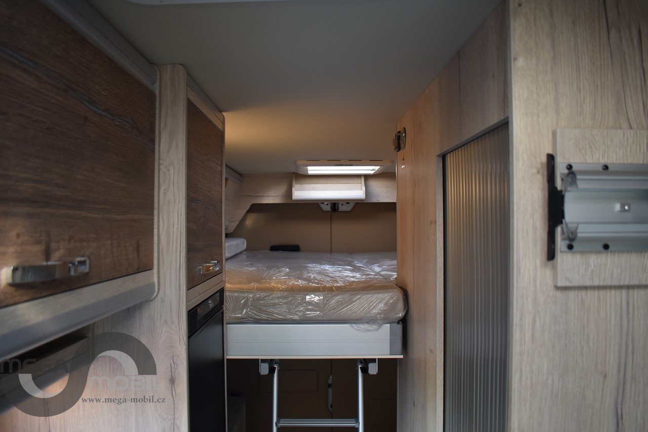 Záruka do 05/2027, jeté jednu sezonu u nás, skladem, ihned k dispozici. Absolutně bez poškození, jako nové. Nyní vybaveno více než na fotkách. Sleva oproti novému cca. 300.000,-Kč. Spodní odnímatelná přídavná postel je mezi skříňkami v garáži. Jedná se o velmi kvalitní, dobře zateplenou a zpracovanou vestavbu od slovinského výrobce Megamobil. Jsme výhradní prodejci pro ČR. Výbava: el. posuvná postel + přídavná patrová postel, zimní paket s naftovým+elektrickým topením Truma 6 D+E, izolovaná odpadní nádrž, vyhřívaná podlaha, venkovní polepy, elektroinstalace Victron Energy + booster 30A, markýza Thule 4m, MaxxFan ventilátor, venkovní sprcha, venkovní vývod plynu, heavy podvozek 435 L4H3, 16" kola s celoročními pneu, kompresorová lednice 90L, dvojitý nástupní schůdek na horní postel, unikátní prostorná sprcha, SOG odvětrávání WC, Isofix, LiFePo 180Ah-vyhřívaná, solární systém 180Wp, infotainment Xzent X-127, couvací kamera, TV, el. výpustný ventil, balíček Rakar, Kontakt: 608965069