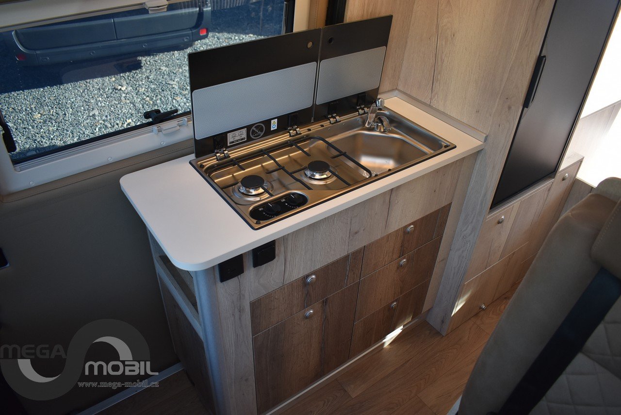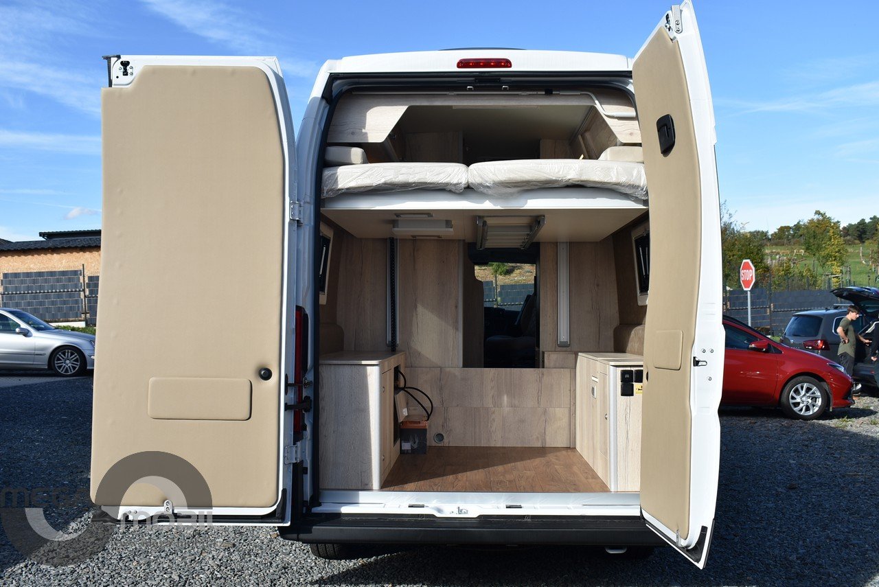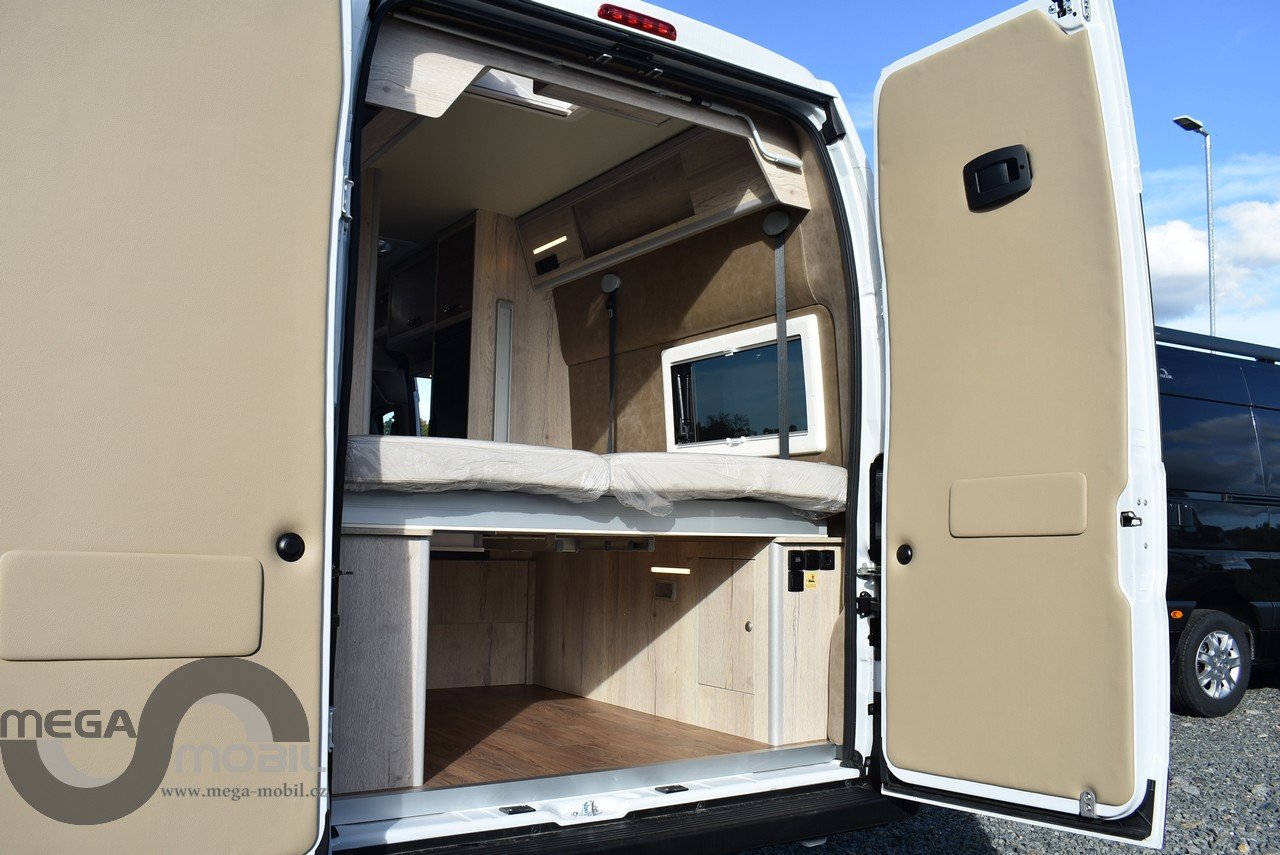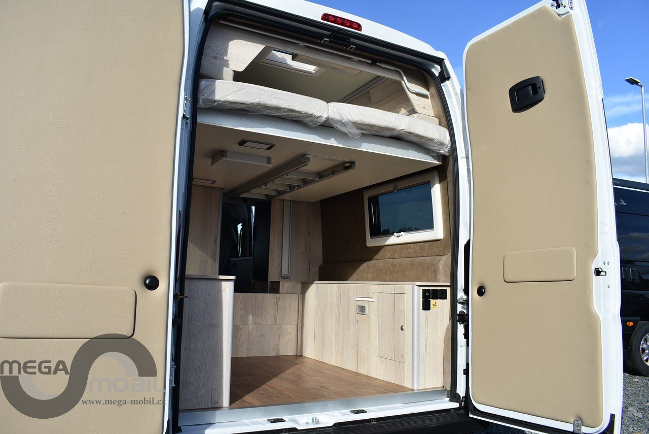 Záruka do 05/2027, jeté jednu sezonu u nás, skladem, ihned k dispozici. Absolutně bez poškození, jako nové. Nyní vybaveno více než na fotkách. Sleva oproti novému cca. 300.000,-Kč. Spodní odnímatelná přídavná postel je mezi skříňkami v garáži. Jedná se o velmi kvalitní, dobře zateplenou a zpracovanou vestavbu od slovinského výrobce Megamobil. Jsme výhradní prodejci pro ČR. Výbava: el. posuvná postel + přídavná patrová postel, zimní paket s naftovým+elektrickým topením Truma 6 D+E, izolovaná odpadní nádrž, vyhřívaná podlaha, venkovní polepy, elektroinstalace Victron Energy + booster 30A, markýza Thule 4m, MaxxFan ventilátor, venkovní sprcha, venkovní vývod plynu, heavy podvozek 435 L4H3, 16" kola s celoročními pneu, kompresorová lednice 90L, dvojitý nástupní schůdek na horní postel, unikátní prostorná sprcha, SOG odvětrávání WC, Isofix, LiFePo 180Ah-vyhřívaná, solární systém 180Wp, infotainment Xzent X-127, couvací kamera, TV, el. výpustný ventil, balíček Rakar, Kontakt: 608965069