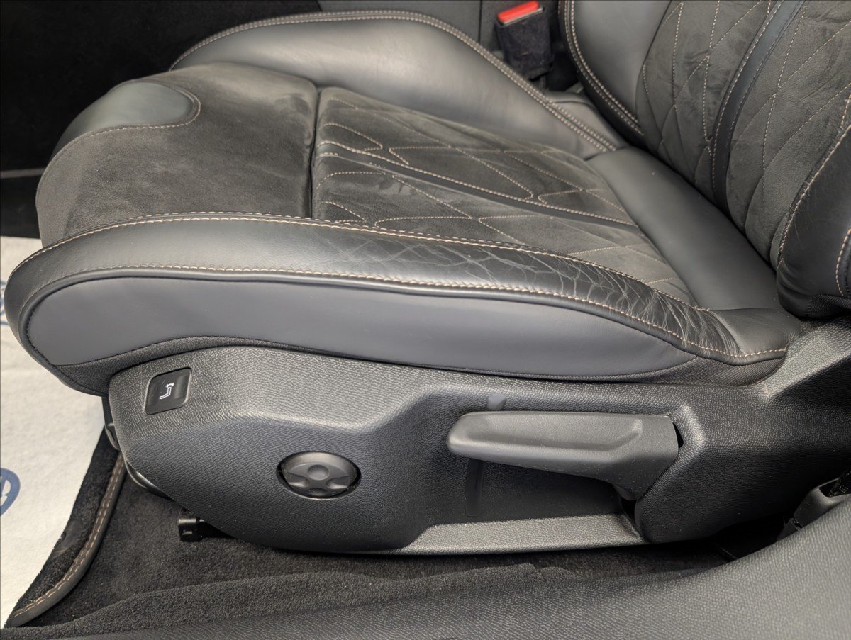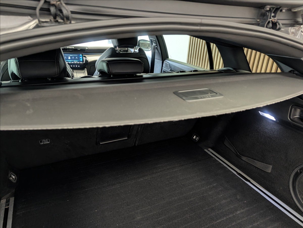 | Vnitřní výbava a komfort | Ambientní LED osvětlení interiéru, Klimatizace aut. , Bezklíčkové ovládání, Deaktivace airbagu spolujezdce, Klimatizace dvouzónová, El. sklopná zrcátka, El. parkovací brzda, Klimatizovaná přihrádka, Kožené čalounění, Multifunkční volant, Nastavitelný volant, Posilovač řízení, Malý kožený paket, Senzor stěračů, Senzor tlaku v pneumatikách, Síťka mezistěny zavazadlového prostoru, Venkovní teploměr, Vyhřívaná zrcátka, Vyhřívané čelní sklo, Zadní loketní opěrka, Pádla řazení na volantu |