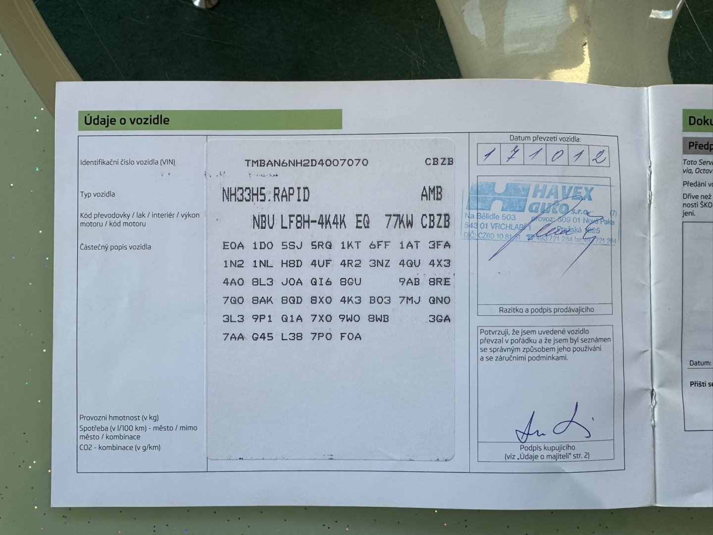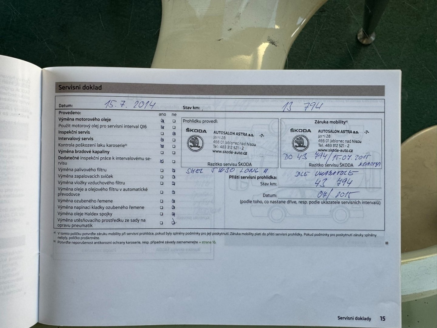 • Servisní knížka
