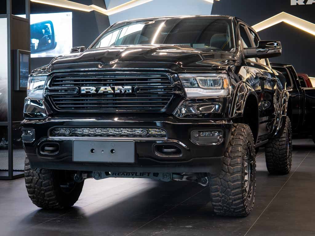Nový RAM 1500 Laramie model 2023 CrewCab 5; 7L V8 8-st. aut. 4x4 pohon. 6' LIFT; 20' alu kola s 35' offroad pneu. LARAMIE LEVEL B EQUIPMENT GROUP; Bed Utility Group; Vzduchový podvozek; E-locker; el; nášlapy; Sport Appearance Package - Alu 20; sportovní kapota; lakované nárazníky v barvě karoserie; přední sportovní maska v barvě karoserie. Uconnect 5C Nav w/12 Display velký multimediální display s podporou pro Android Auto a Apple CarPlay. ZÁRUKA 2 ROKY / 100.000 km; možnost prodloužit na 5 let.