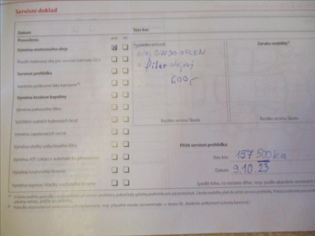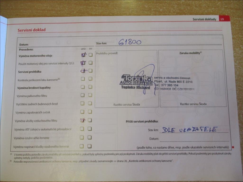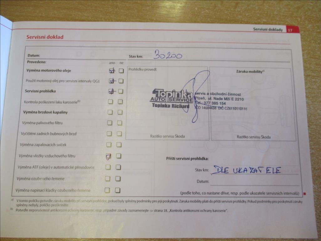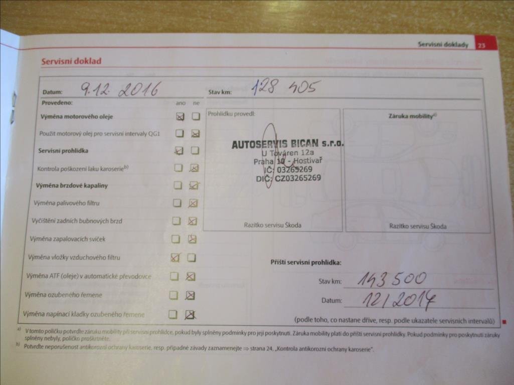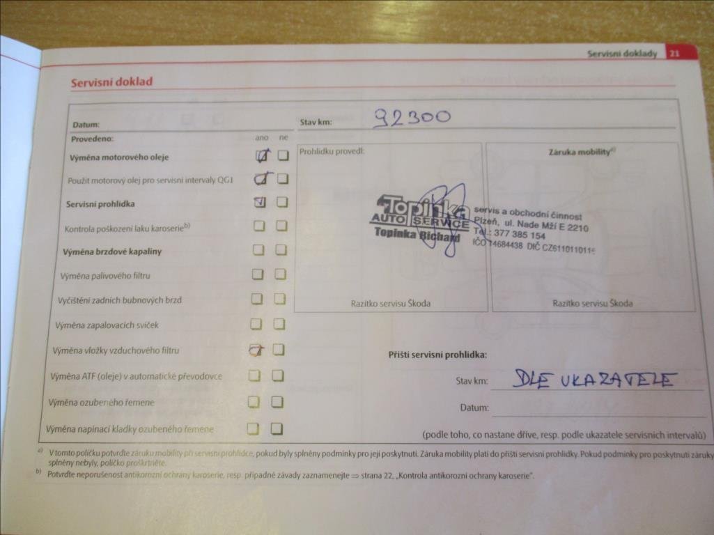 - Servisní knížka