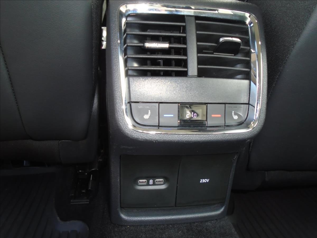 | Vnitřní výbava a komfort | Ambientní LED osvětlení interiéru, Klimatizace aut. , Bezklíčkové ovládání, Deaktivace airbagu spolujezdce, Klimatizace dvouzónová, El. sklopná zrcátka, Klimatizovaná přihrádka, Multifunkční volant, Nastavitelný volant, Posilovač řízení, Senzor opotřebení brzd. destiček, Senzor stěračů, Senzor tlaku v pneumatikách, Klimatizace třízónová, Venkovní teploměr, Vnitřní teploměr, Vyhřívaná zrcátka |