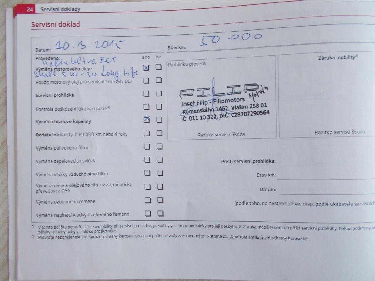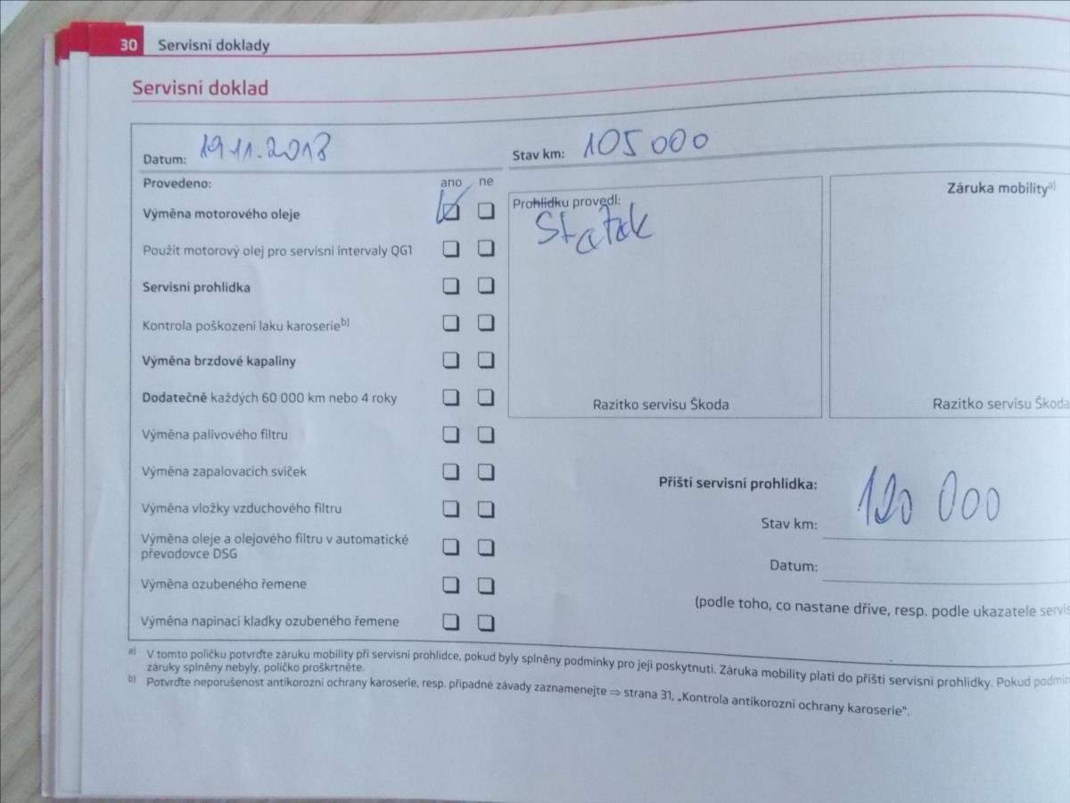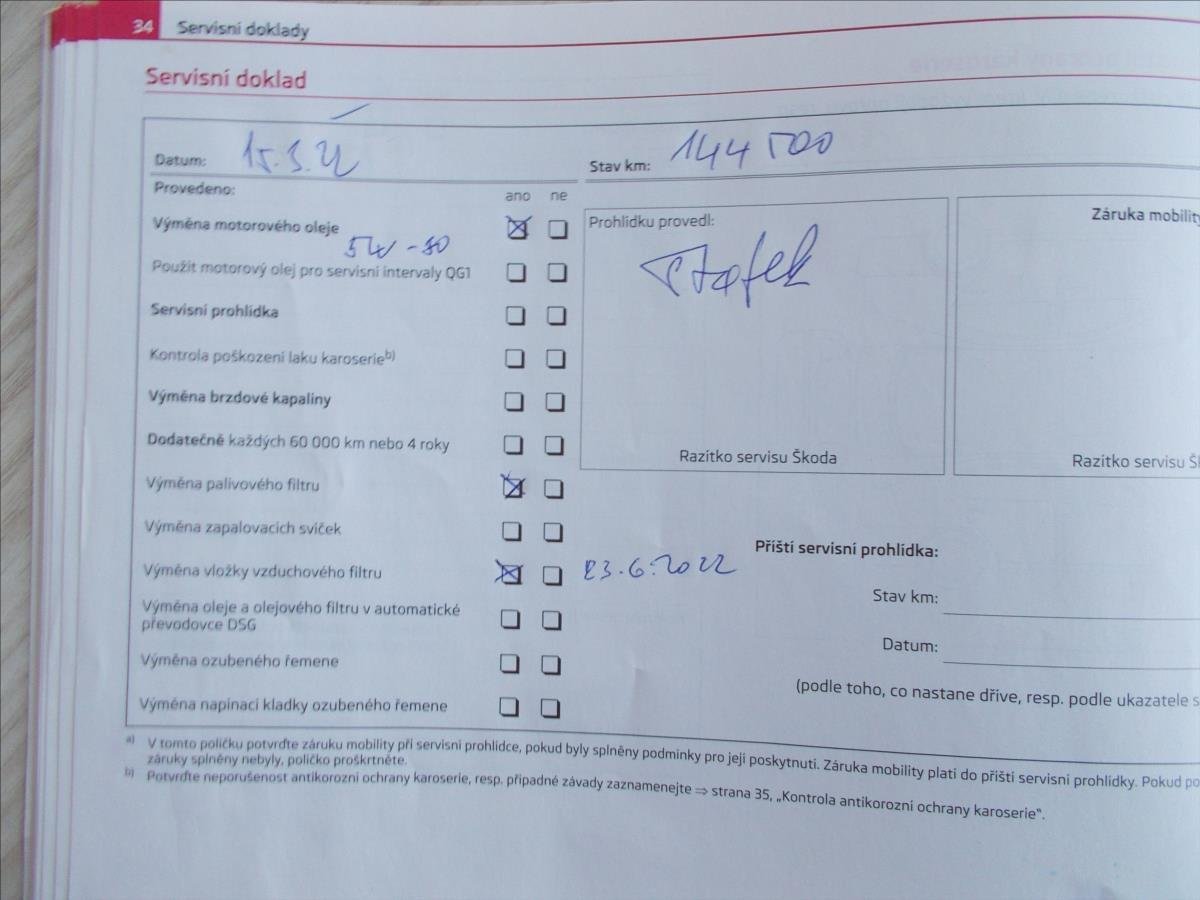 - Servisní knížka