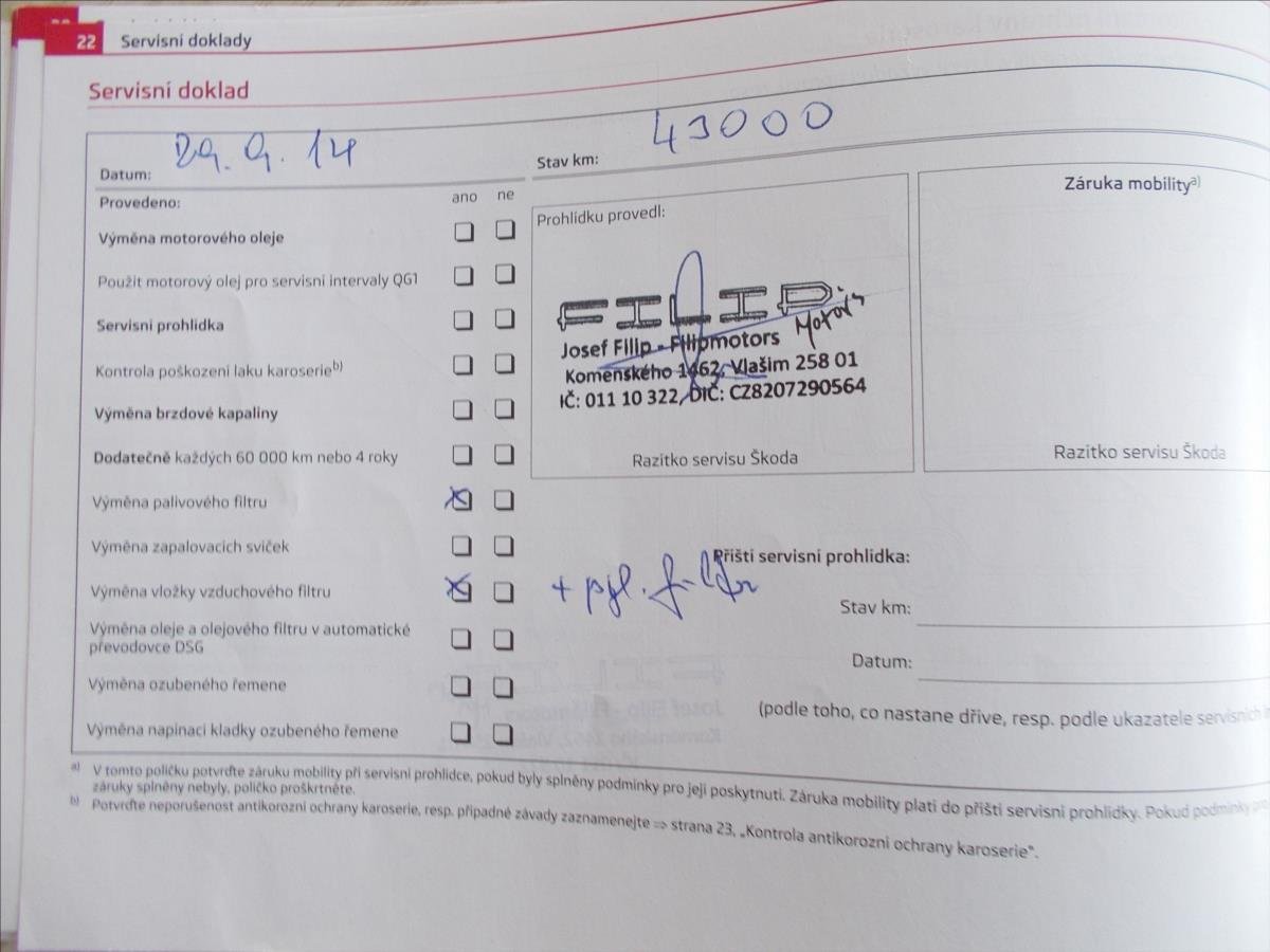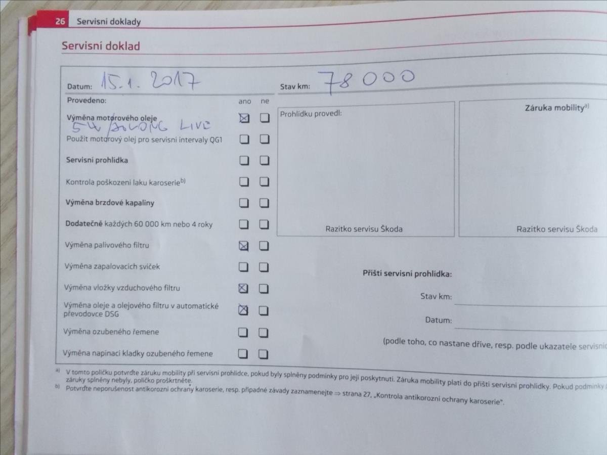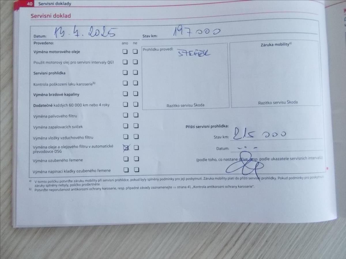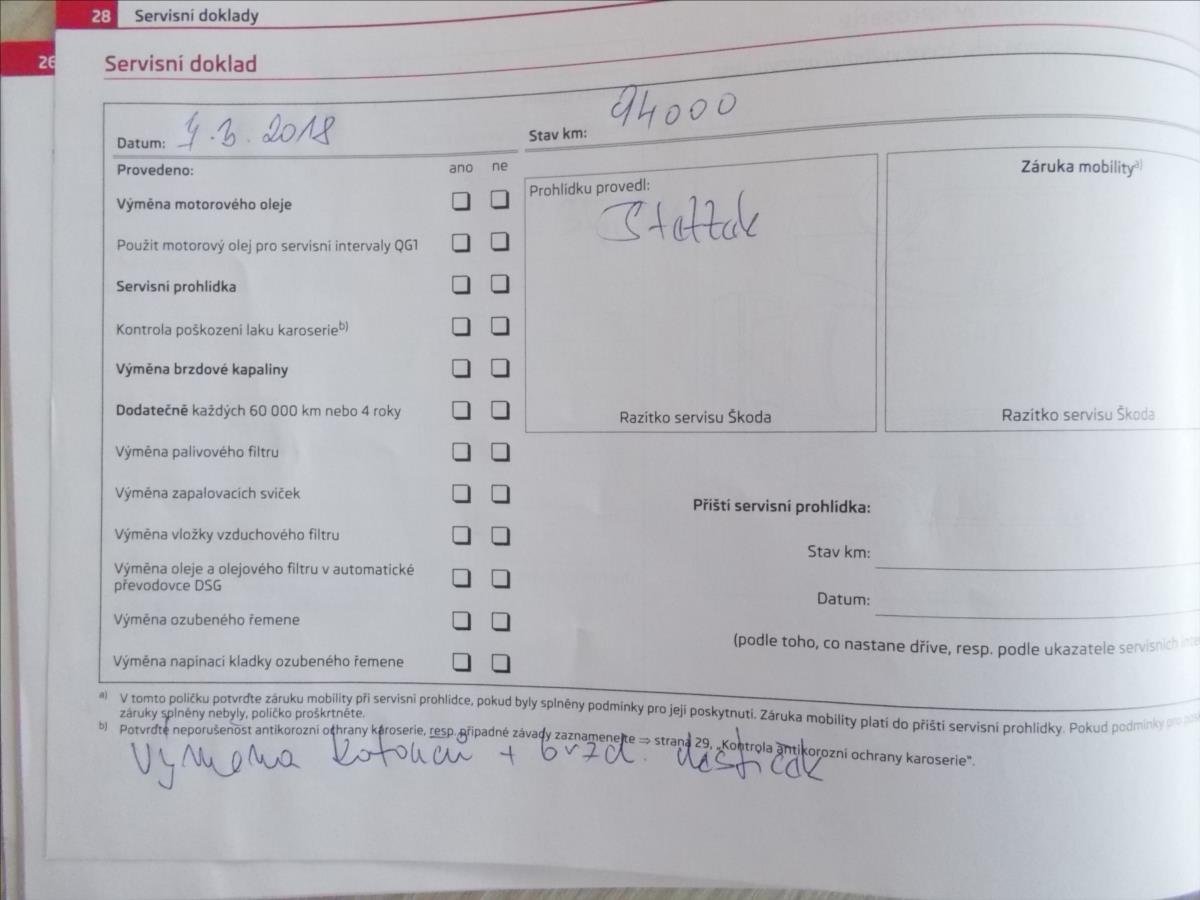 - Servisní knížka