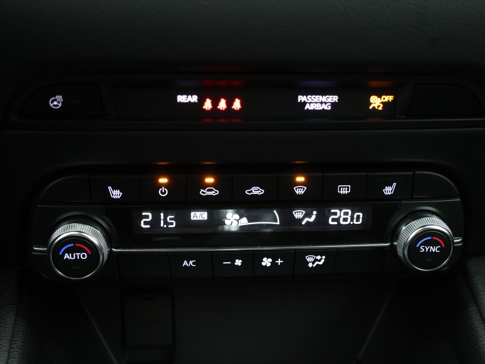 Vnitřní výbava a komfort Klimatizace aut. , Bezklíčkové ovládání, Deaktivace airbagu spolujezdce, Klimatizace dvouzónová, El. sklopná zrcátka, El. parkovací brzda, Multifunkční volant, Nastavitelný volant, Posilovač řízení, Senzor stěračů, Senzor tlaku v pneumatikách, Venkovní teploměr, Vyhřívaná zrcátka, Vyhřívaný volant, Zadní loketní opěrka