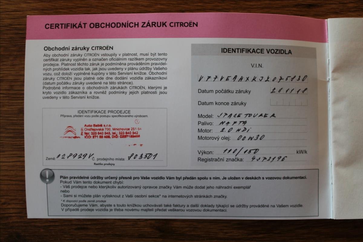 - Servisní knížka