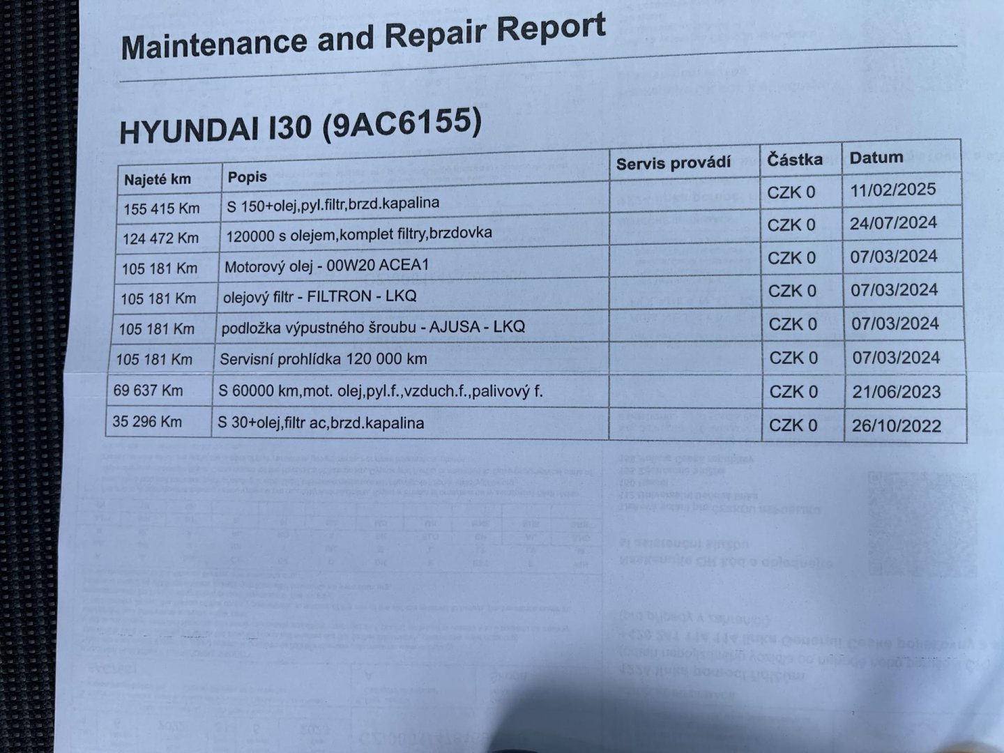 • Servisní knížka