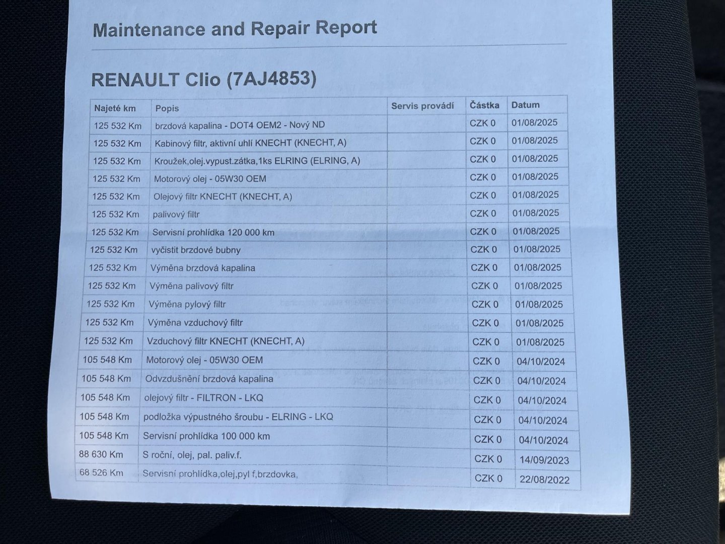- Servisní knížka