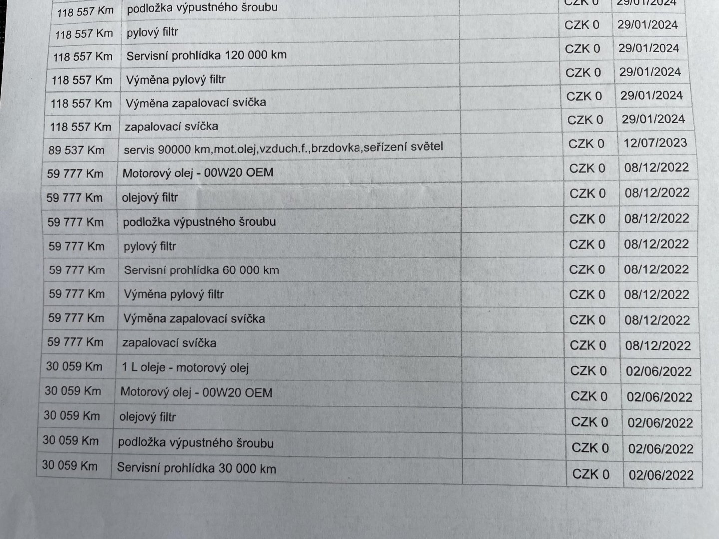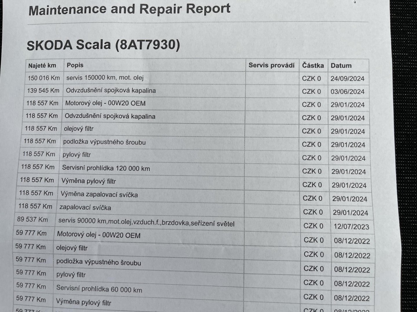 - Servisní knížka