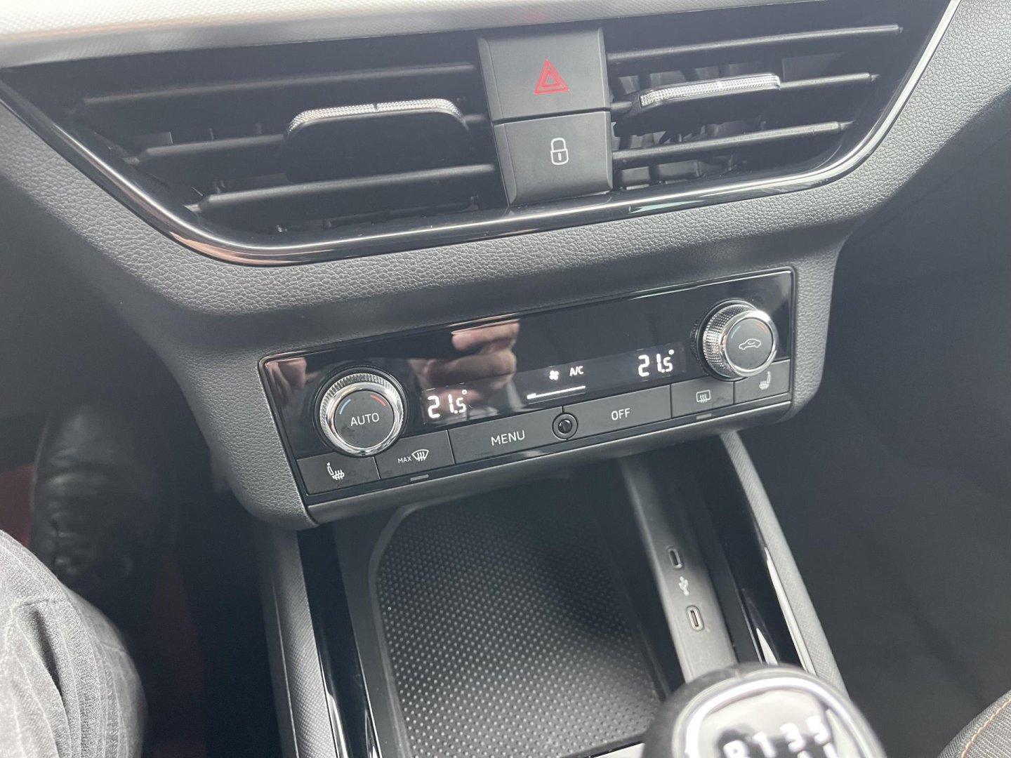 | Vnitřní výbava a komfort | Posilovač řízení, Klimatizace dvouzónová, Klimatizace aut. , Bezklíčkové ovládání, Senzor stěračů, Nastavitelný volant, Multifunkční volant, Deaktivace airbagu spolujezdce, El. ovládání oken, El. přední okna, El. ovládání zrcátek, Senzor tlaku v pneumatikách, Senzor opotřebení brzd. destiček, Venkovní teploměr, Vyhřívaná zrcátka, Klimatizovaná přihrádka, Síťka mezistěny zavazadlového prostoru, Vnitřní teploměr, El. startér, Malý kožený paket |