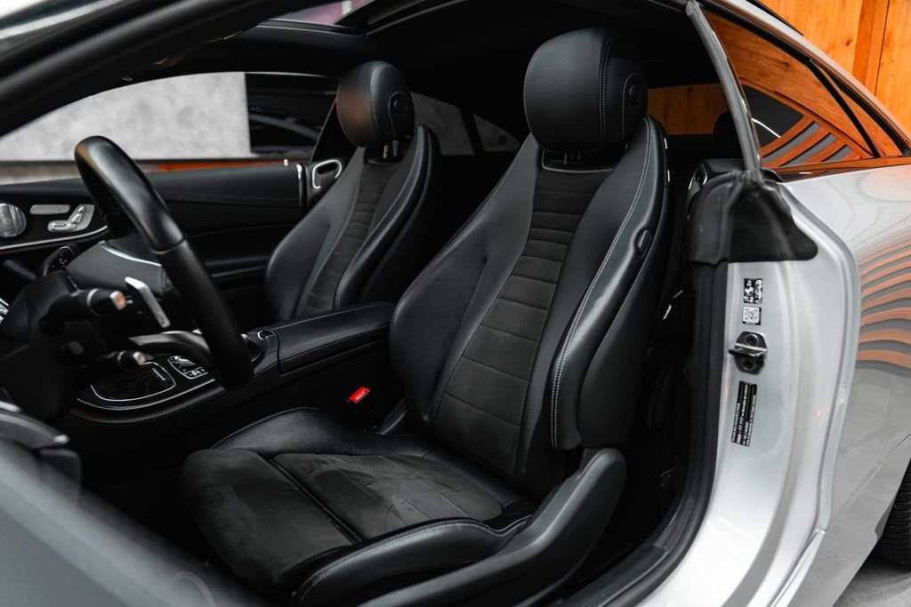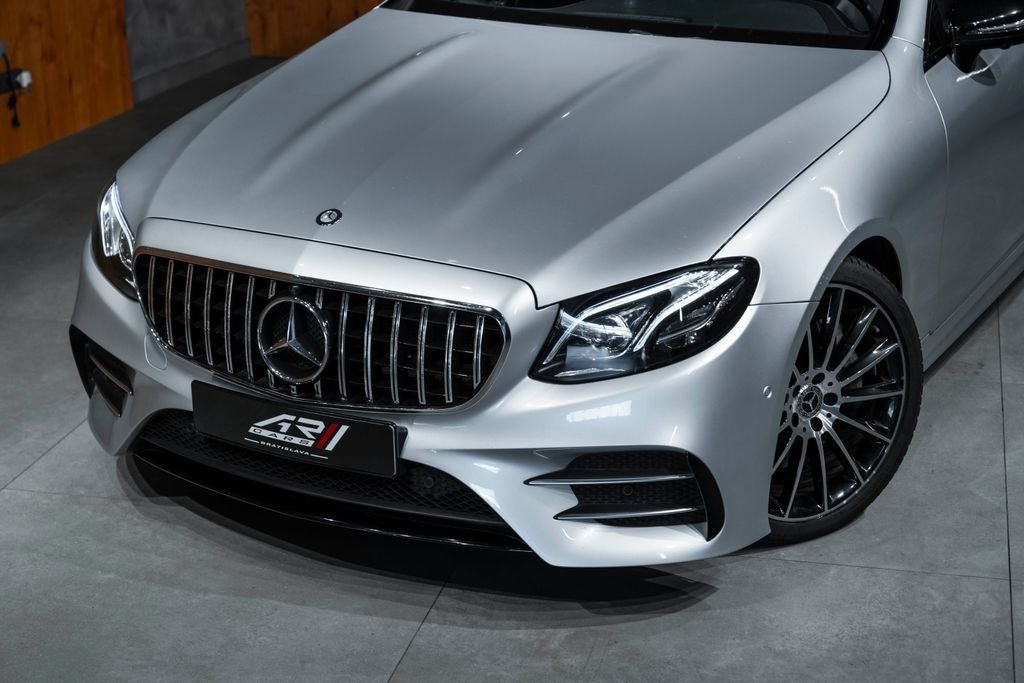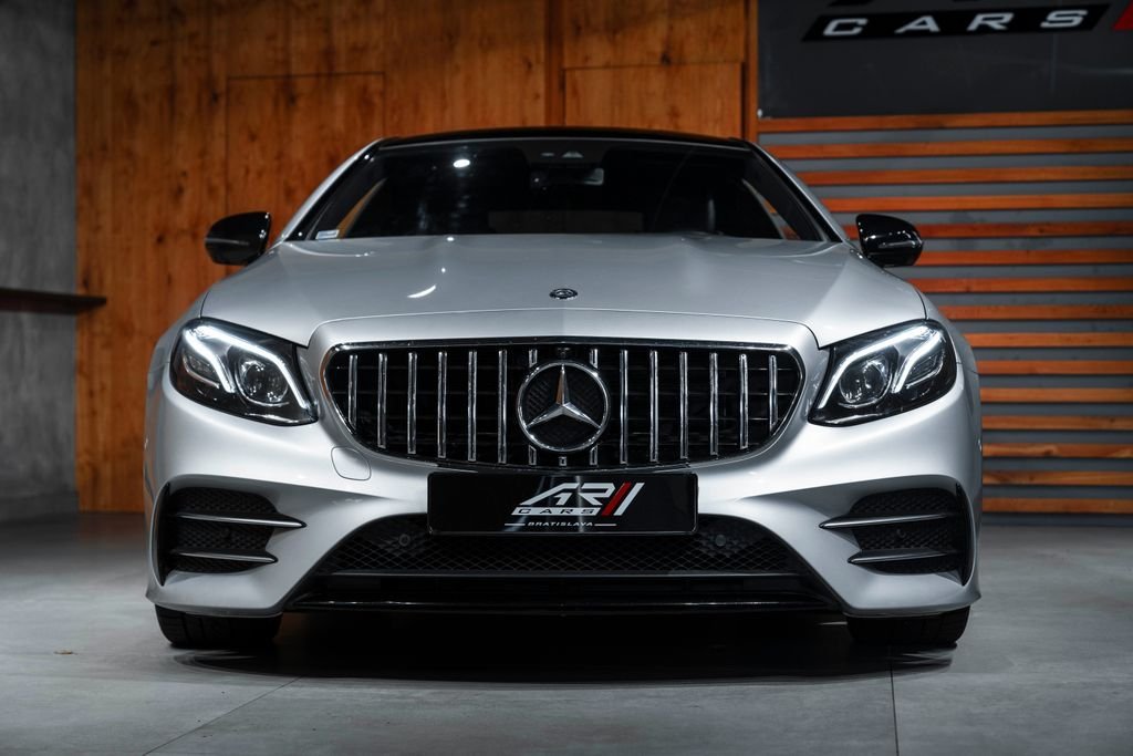 Bratislava; Mercedes-Benz E400 4Matic Coupé Exteriér: Iridium Silver Technológie a konektivita • Aktualizácia softvéru hlavnej jednotky • Mercedes-Benz Connect: vzdialené služby vozidla + concierge služby (Hermes) • Balík integrácie smartfónu • Apple CarPlay & Android Auto • GPS anténa + telefónna anténa • COMAND Online NTG 5/5.5 • Touchpad s otočným ovládačom • Multifunkčný prístrojový displej (M display) • Niekoľkoročné bezplatné aktualizácie máp • Jazyk prístrojovky / HU – slovenčina • Hlavná jednotka pre Európu / SNŠ / Mongolsko Asistenčné systémy a bezpečnosť • Parametrické riadenie / Vario riadenie • Asistent mŕtveho uhla • Aktívny parkovací asistent • Parkovací balík s 360° kamerou • Varovanie pred kolíziou s aktívnym brzdením (FCW Stop) • Asistent dopravných značiek • Automatický diaľkový asistent High Beam Assist Plus (IHC+) • Systém monitorovania tlaku v pneumatikách • Núdzové volanie (eCall) • Airbag vodiča; spolujazdca; bočné; panvové a okenné airbagy • Ochrana chodcov – aktívna kapota • Indikátor zapnutia zadných bezpečnostných pásov • ISOFIX / i-Size úchyty na detské sedačky Komfort a interiér • Elektricky nastaviteľné sedadlo vodiča s pamäťou • Pamäťový balík – sedadlo vodiča; stĺpik riadenia; zrkadlá • Vyhrievané predné sedadlá • Bedrová opierka (U22) • Ambientné osvetlenie interiéru • Analógové hodiny • Čierny látkový strop • Čalúnenie: látka / umelá koža ARTICO / mikrovlákno (čierna/anátracit) • Palubná doska čalúnená syntetickou kožou • Multifunkčný Supersport volant v koži (L5C) • AMG rohože Exteriér a dizajn • AMG Exteriérový balík (P31) – športové nárazníky a prahy • AMG Interiérový balík (P29) • Night Package (P55) – čierne prvky exteriéru • 20” AMG viaclúčové disky (RVR) • Rozšírené podbehy kolies • Panoramatická posuvná sklenená strecha • Tmavené zadné sklá • Metalíza Iridium Silver (775) • Dynamické LED svetlomety (špecifikácia pre pravostrannú premávku) Praktické a komfortné funkcie • KEYLESS-GO + Hands-Free Access • Elektrické dvere batožinového priestoru s komfortným zatváraním • Soft-close dvere • Dvojzónová automatická klimatizácia • Palivová nádrž s veľkou kapacitou • Sklopné zadné operadlo (287) Podvozok a jazdná dynamika • AIRMATIC DC – semiaktívne vzduchové odpruženie • Jazdné režimy Agility Select • Aktívne adaptívne tlmenie „Normally Open“ • Pohon všetkých kolies 4MATIC • 9-stupňová automatická prevodovka • AMG koncovky výfuku • Letné pneumatiky s technológiou run-flat (R66) Motor • Benzínový motor V6 M276 • Verzia so zvýšeným výkonom (MO14) – špecifikácia E 400 • Turbodúchadlo s intercoolerom