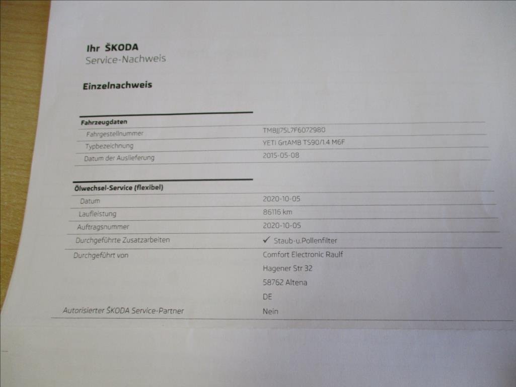 - Servisní knížka