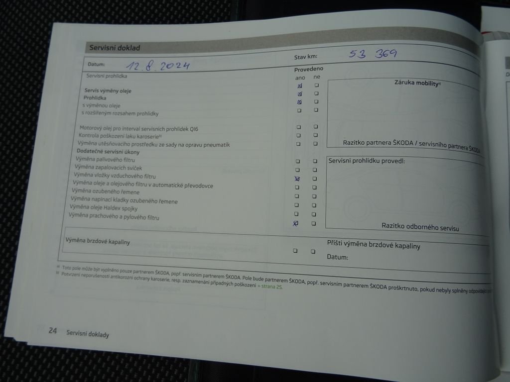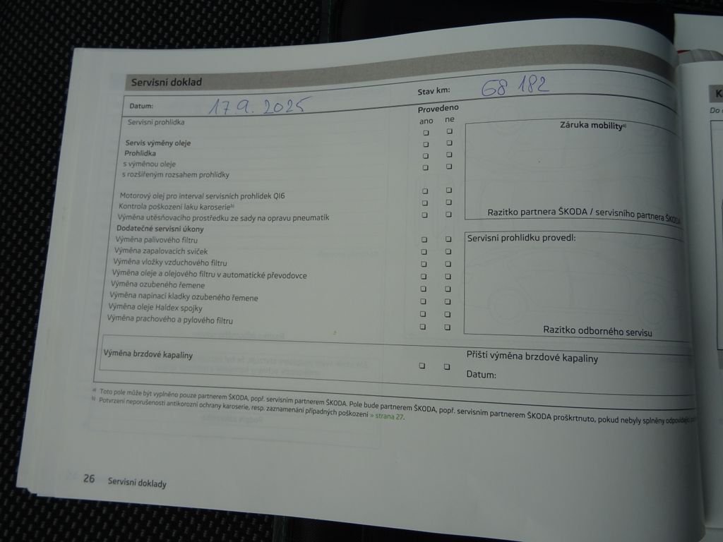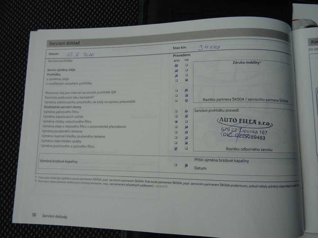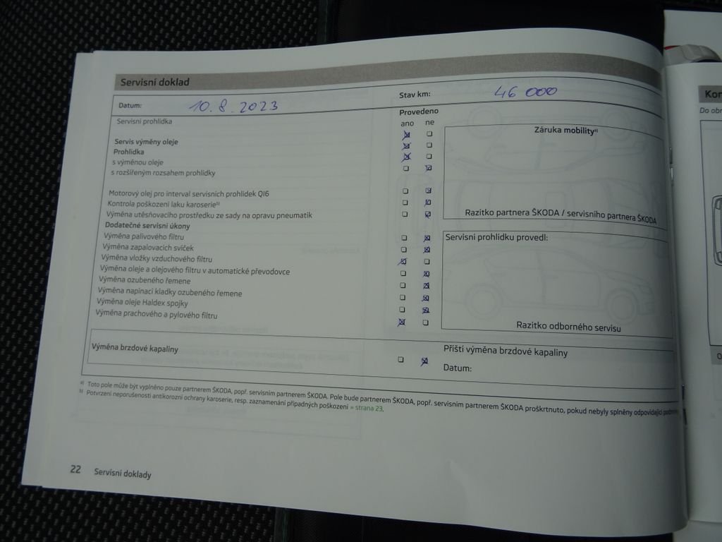 - Servisní knížka