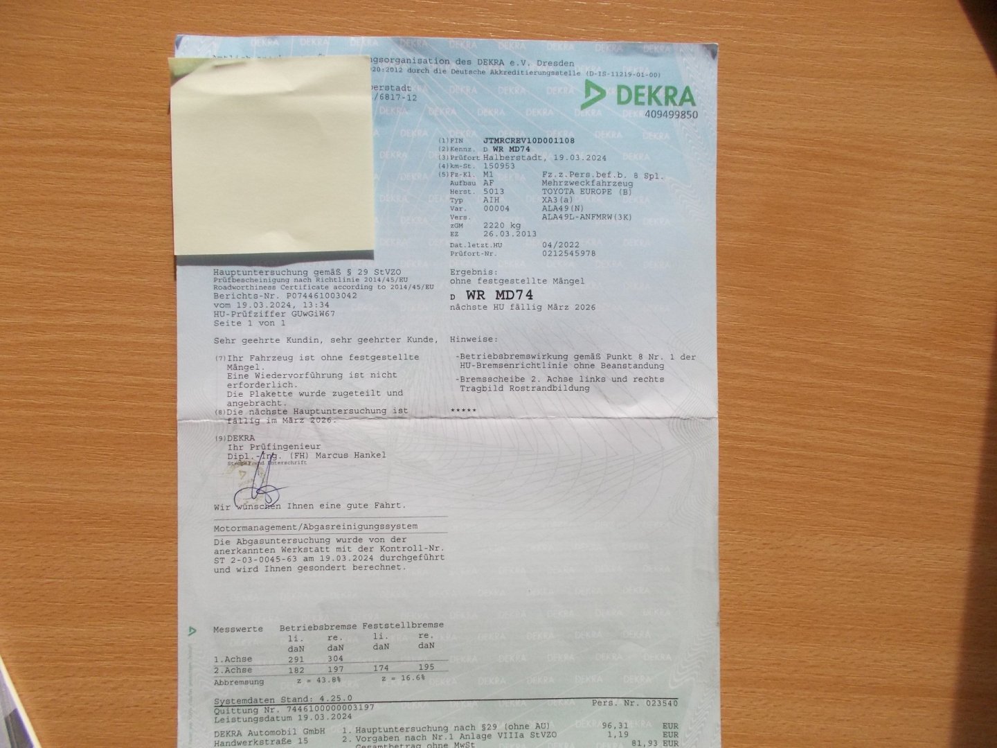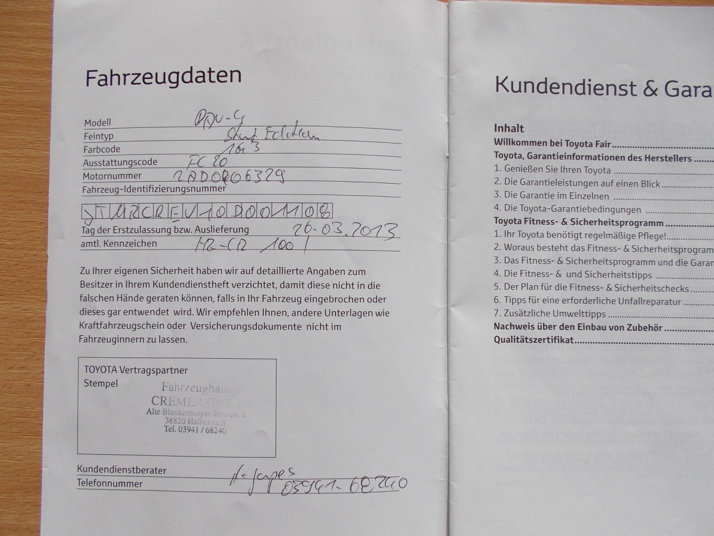 1. Majitel, Nehavarované, Servisní knížka, pravidelný servis u Toyota SRN