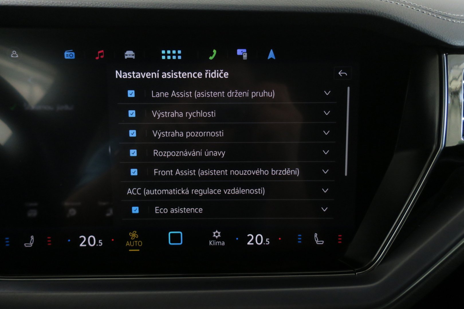 | Asistenční systémy | 360° monitorovací systém (AVM), Adaptivní tempomat, Aktivní asistent řízení, Asistent pro jízdu v koloně, Asistent pro vedení vozu v jízdních pruzích, Asistent při jízdě ze svahu, Asistent rozjezdu do kopce, Asistent změny jízdního pruhu, Parkovací asistent, Parkovací kamera, Parkovací senzory, Parkovací senzory přední, Parkovací senzory zadní, Rozpoznávání dopravních značek, Tempomat |