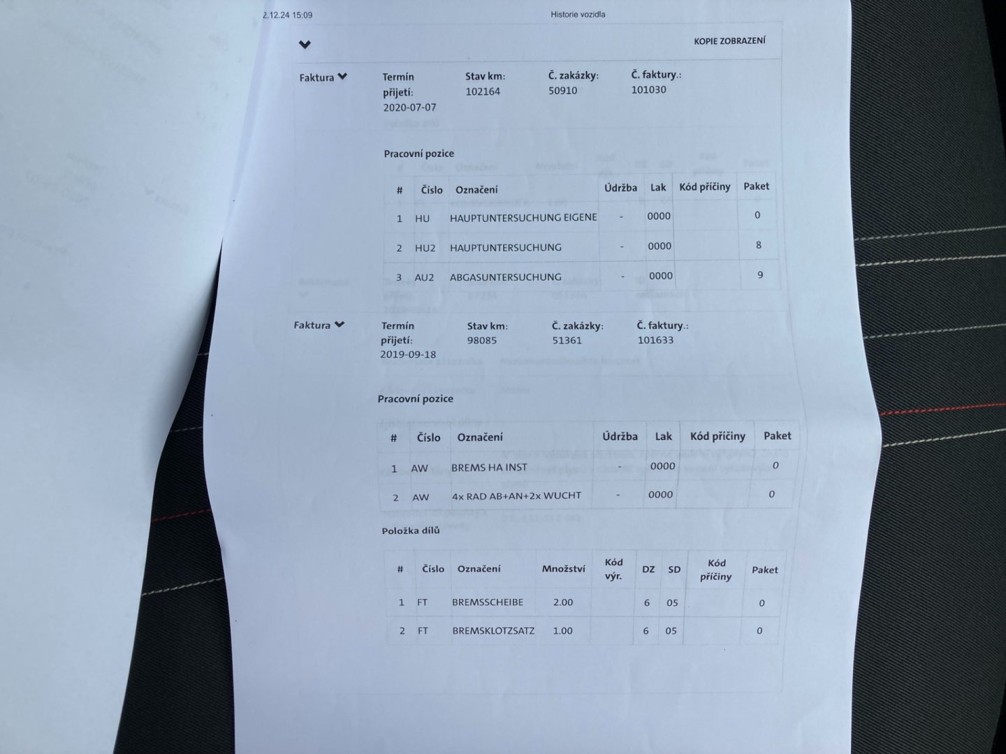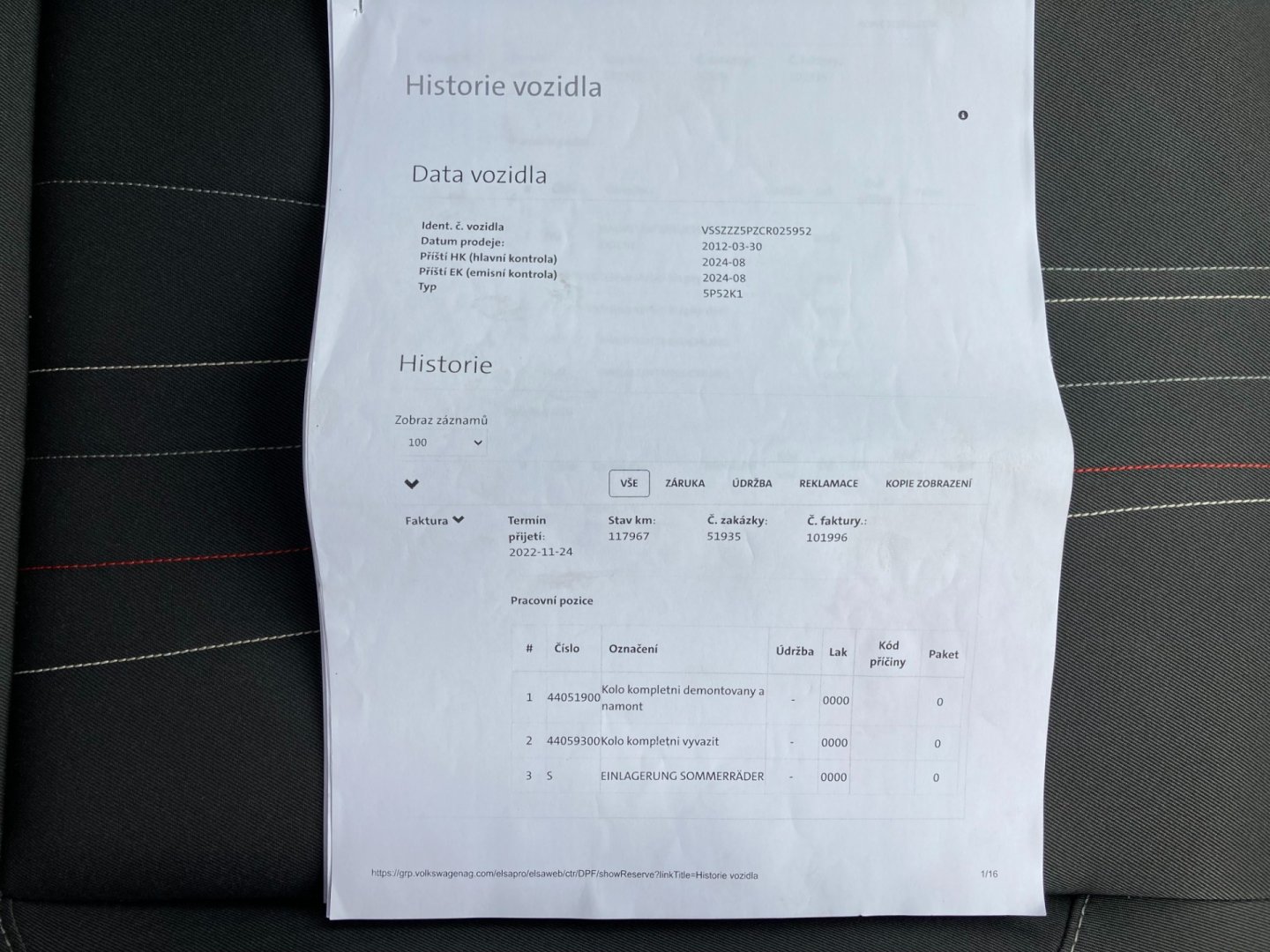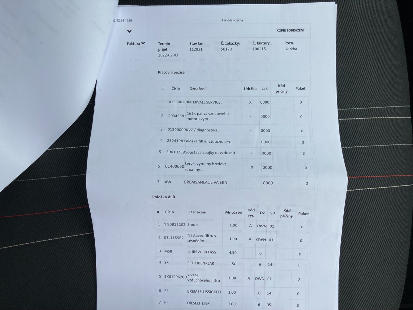 • Servisní knížka