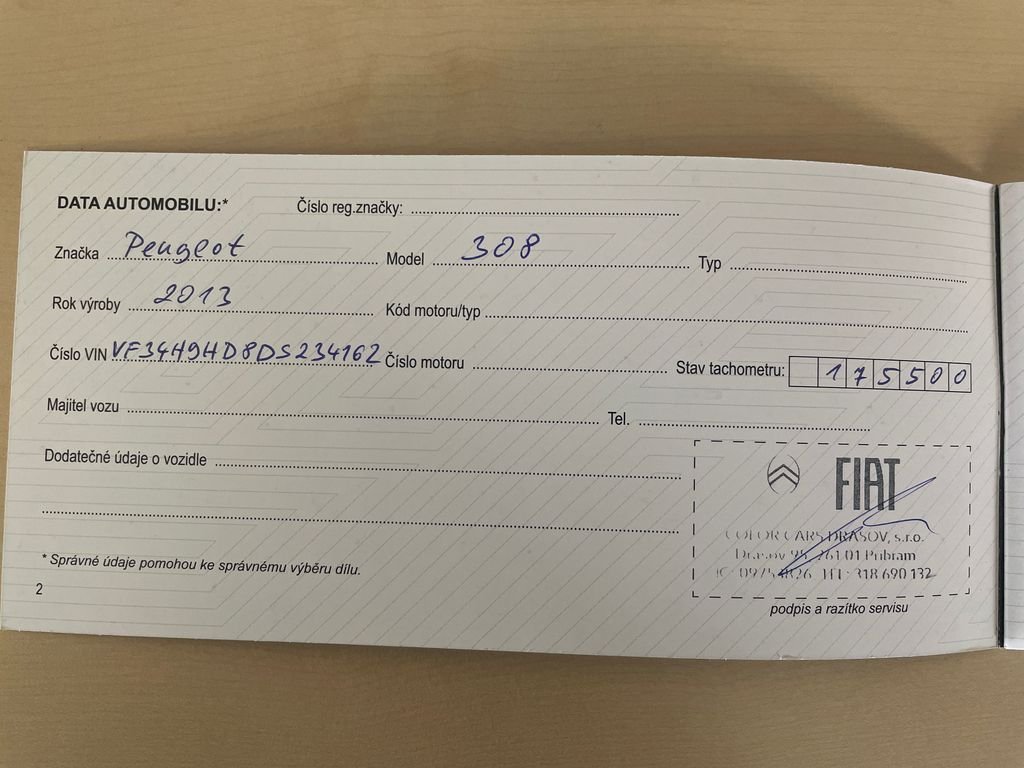 - Servisní knížka
