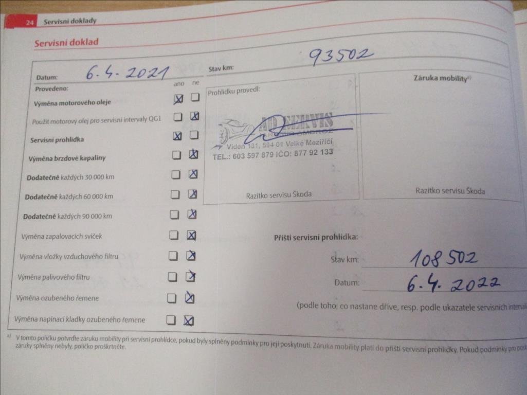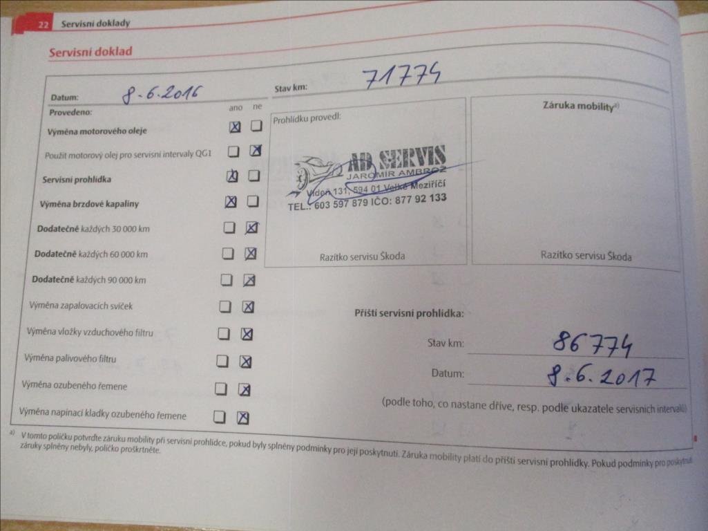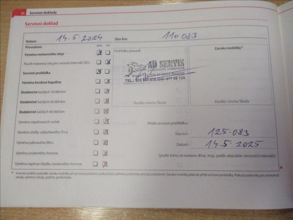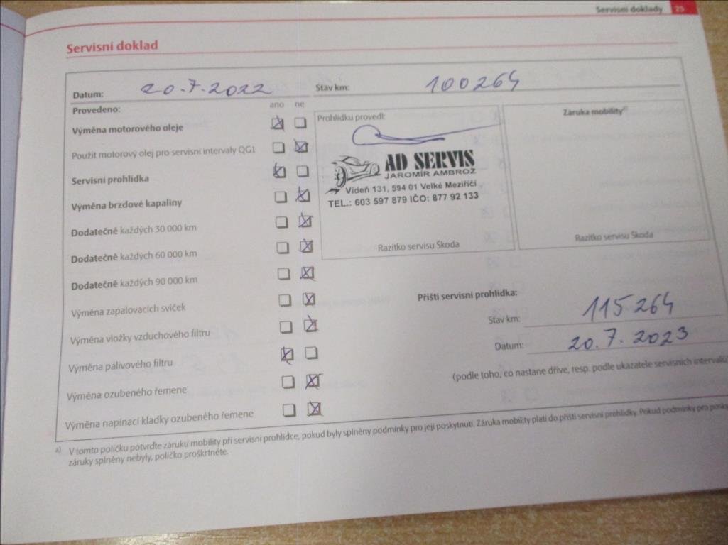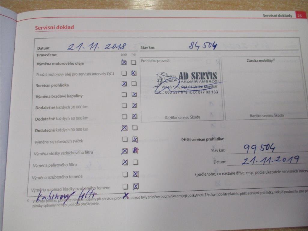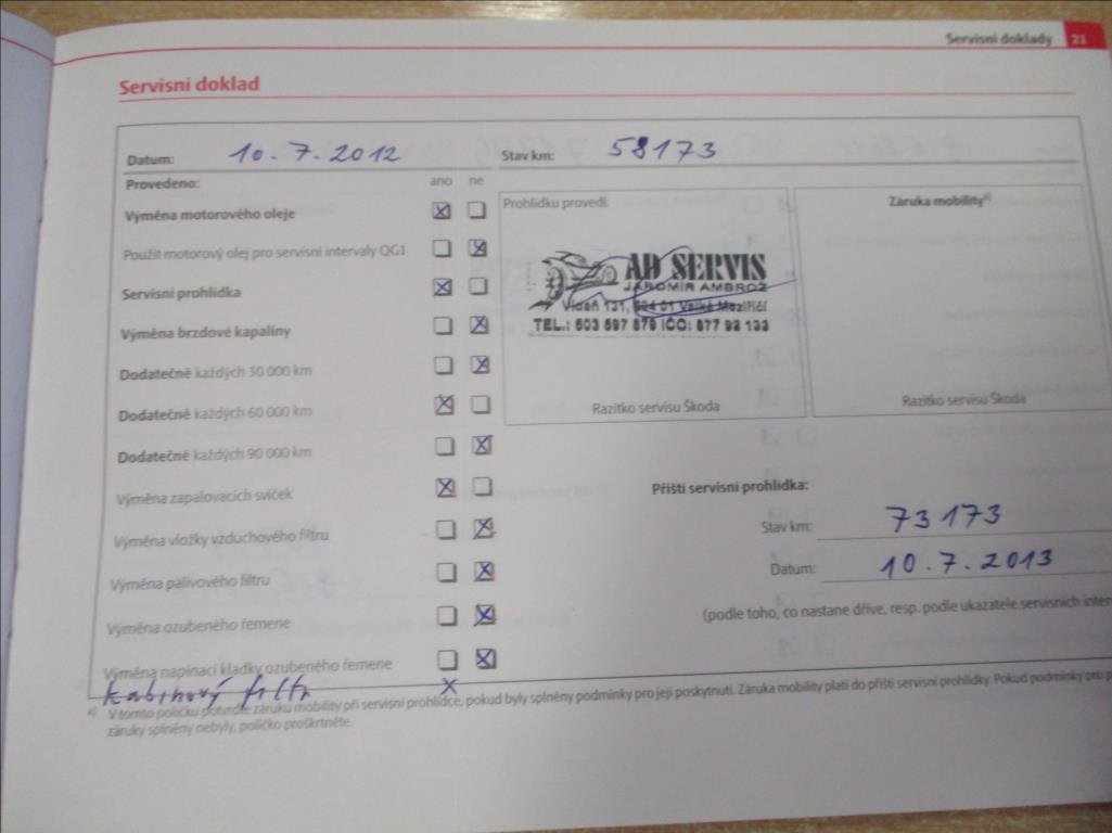 - Servisní knížka