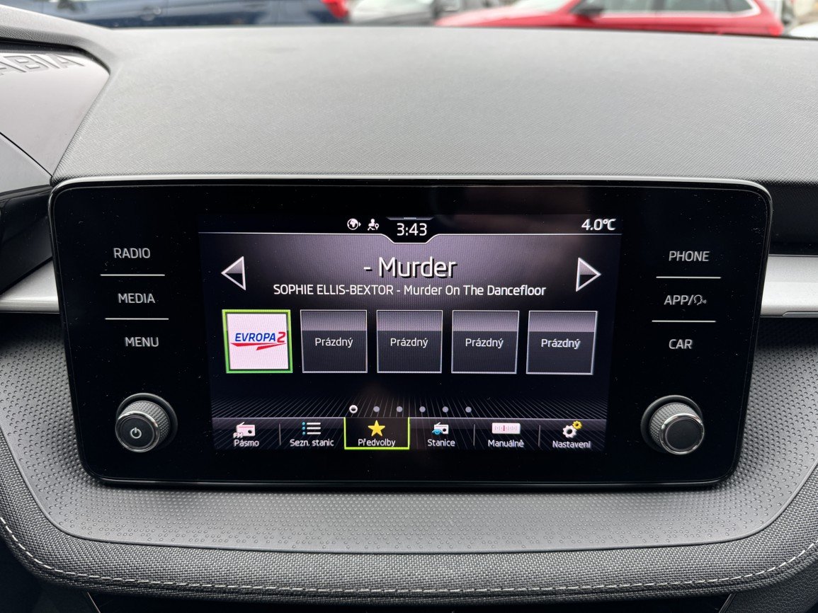 | Palubní systémy a konektivita | Android Auto, Apple Car Play, Bluetooth, Digitální příjem rádia (DAB), Mobilní připojení, Originální autorádio, Palubní počítač, USB |