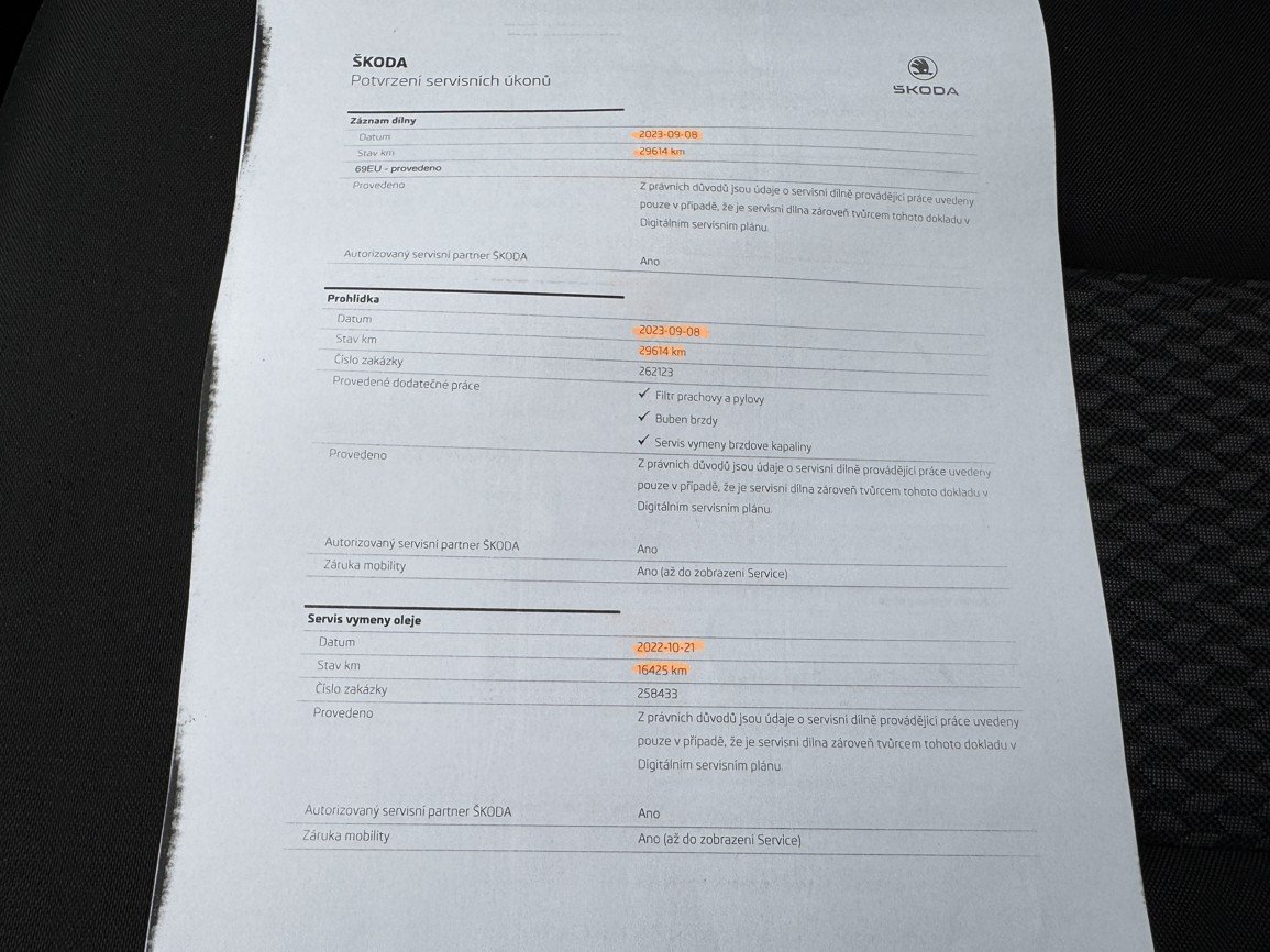 | Vnitřní výbava a komfort | Ambientní LED osvětlení interiéru, Bezklíčkové ovládání, Deaktivace airbagu spolujezdce, El. ovládání oken, El. ovládání zrcátek, Elektrochromatické vnitřní zpětné zrcátko, Klimatizace aut. , Malý kožený paket, Multifunkční volant, Nastavitelný volant, Posilovač řízení, Senzor stěračů, Senzor tlaku v pneumatikách, Venkovní teploměr, Vyhřívaná zrcátka |