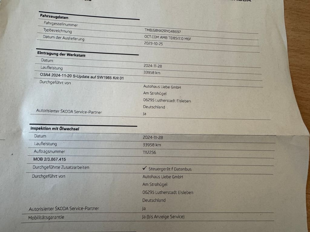 - Servisní knížka