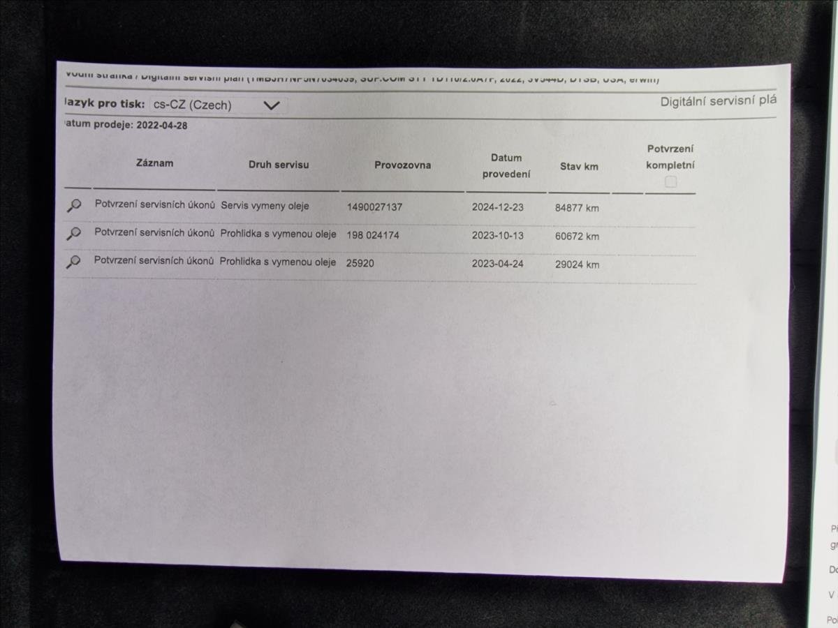 - Servisní knížka