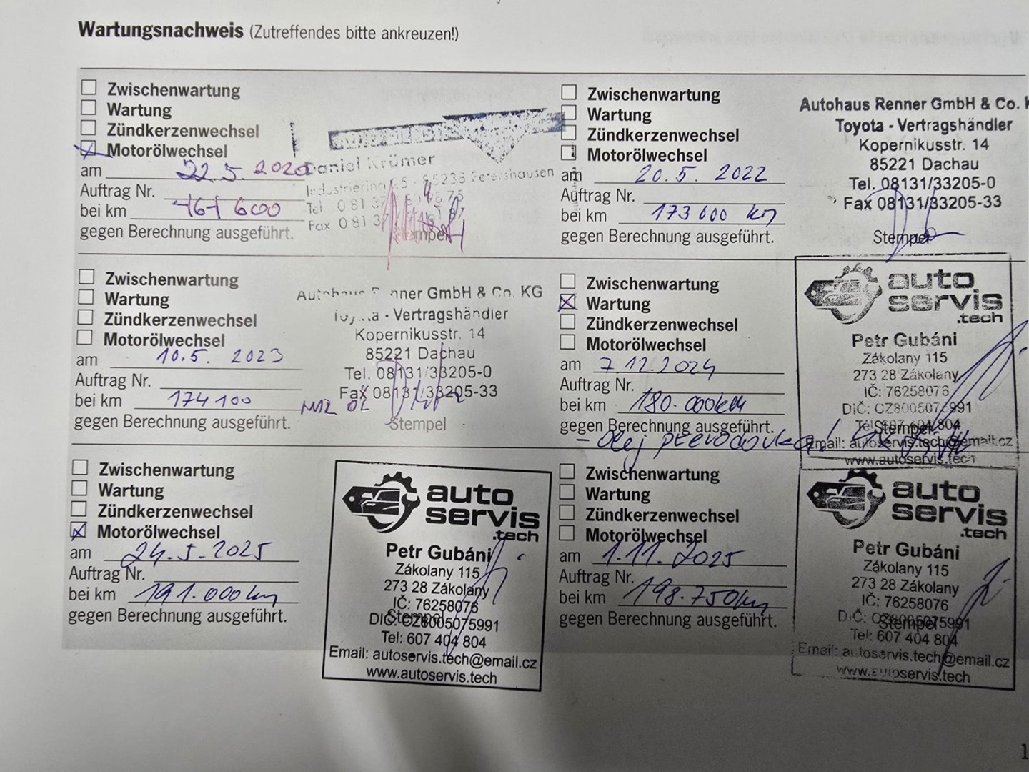- Servisní knížka